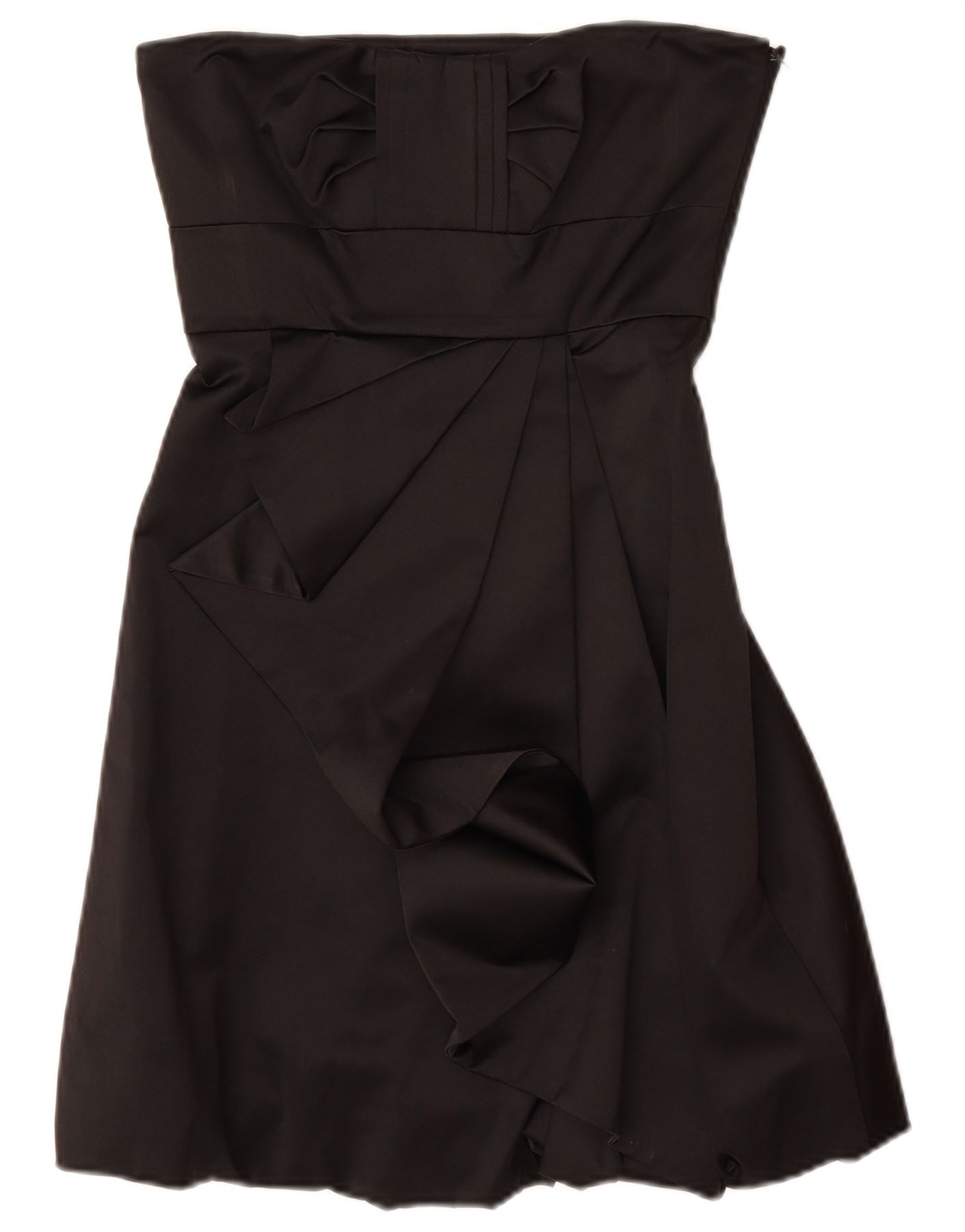 Vestido feminino KAREN MILLEN com babados na frente e sem alças Reino Unido 8 pequeno algodão preto