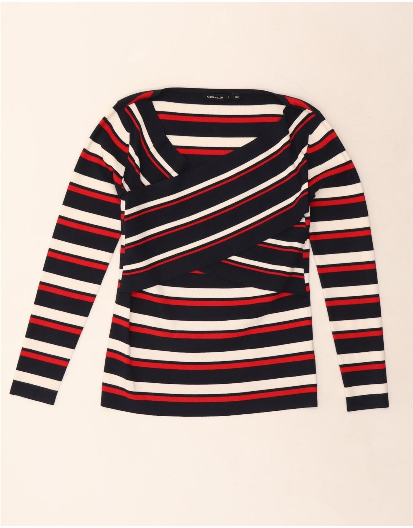 Top feminino KAREN MILLEN manga comprida UK 14 grande listrado multicolorido