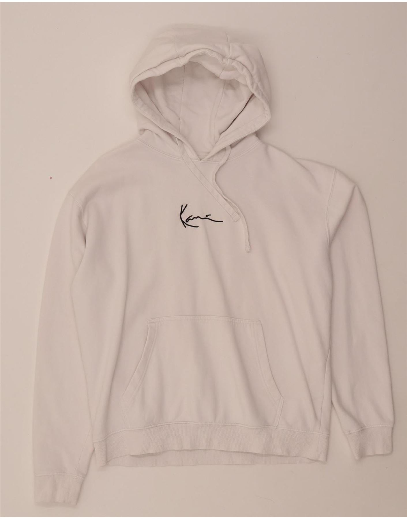 KARL KANI Suéter masculino com capuz gráfico solto e pequeno algodão branco