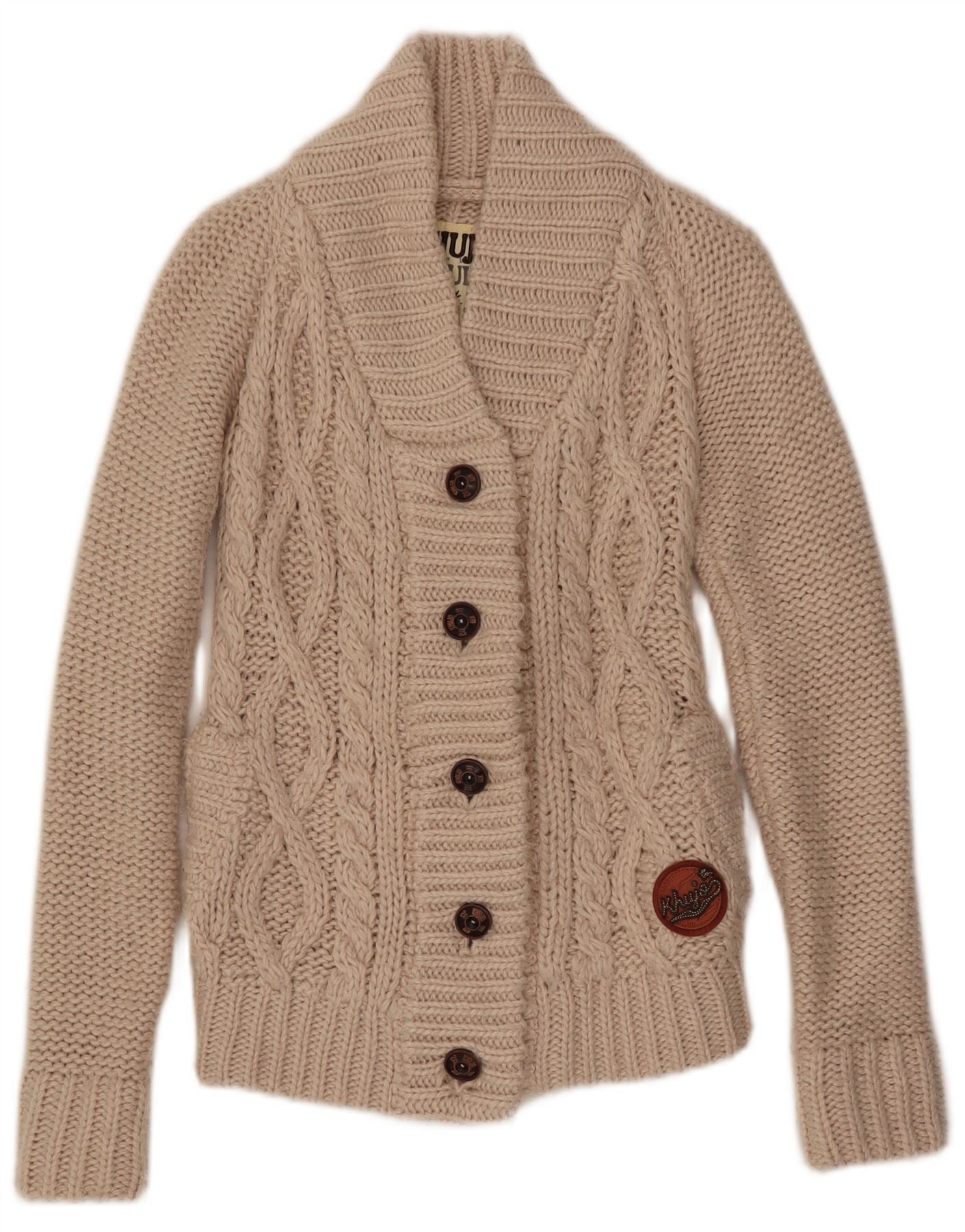 Suéter cardigã feminino KHUJO Reino Unido 8 pequeno bege