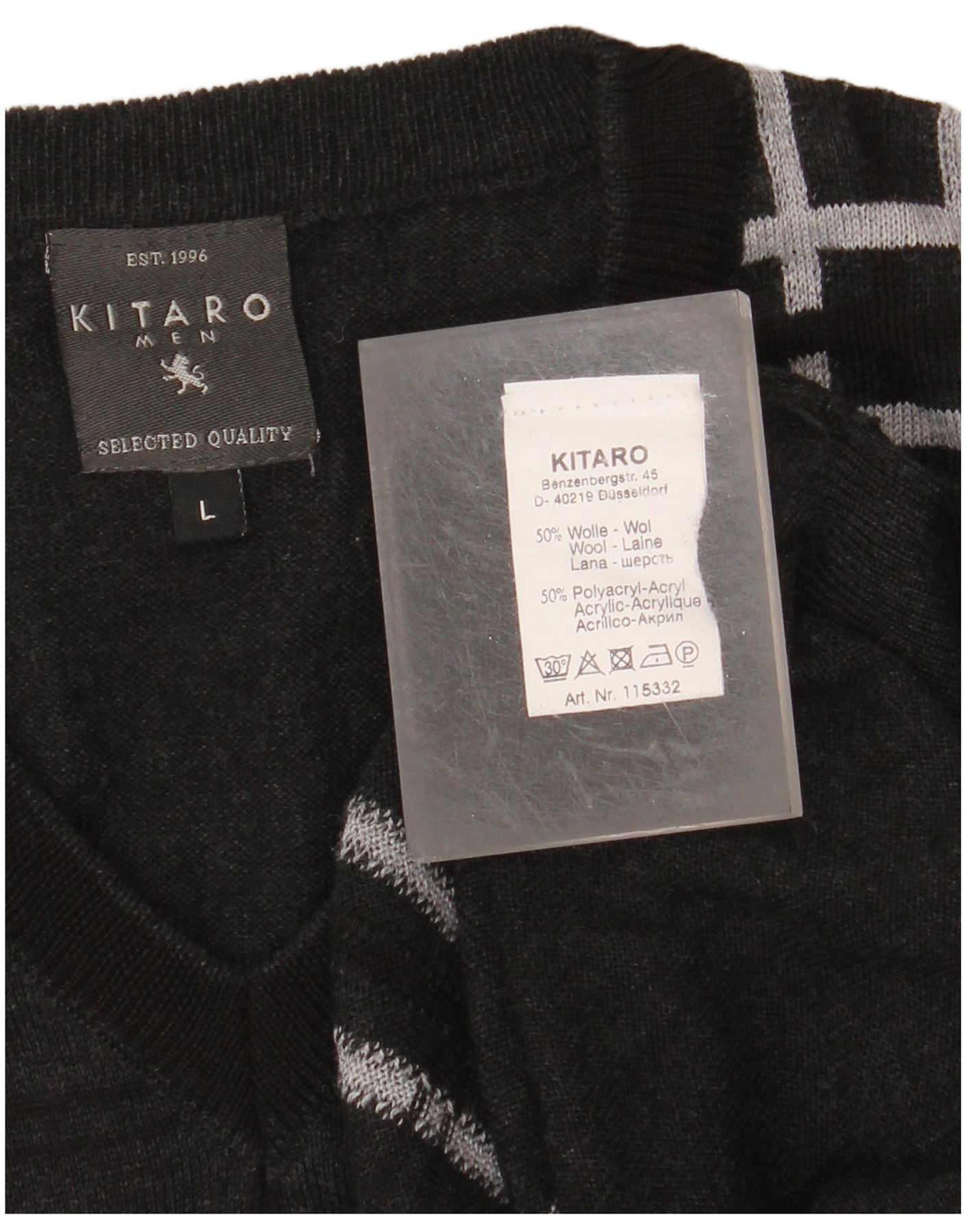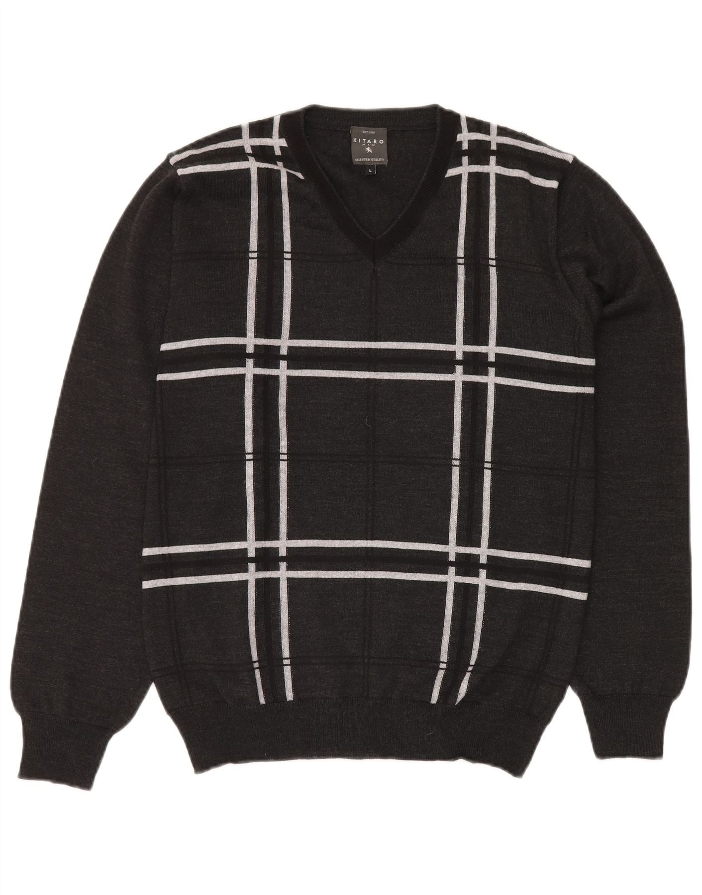 Suéter masculino KITARO com decote em V grande lã xadrez cinza