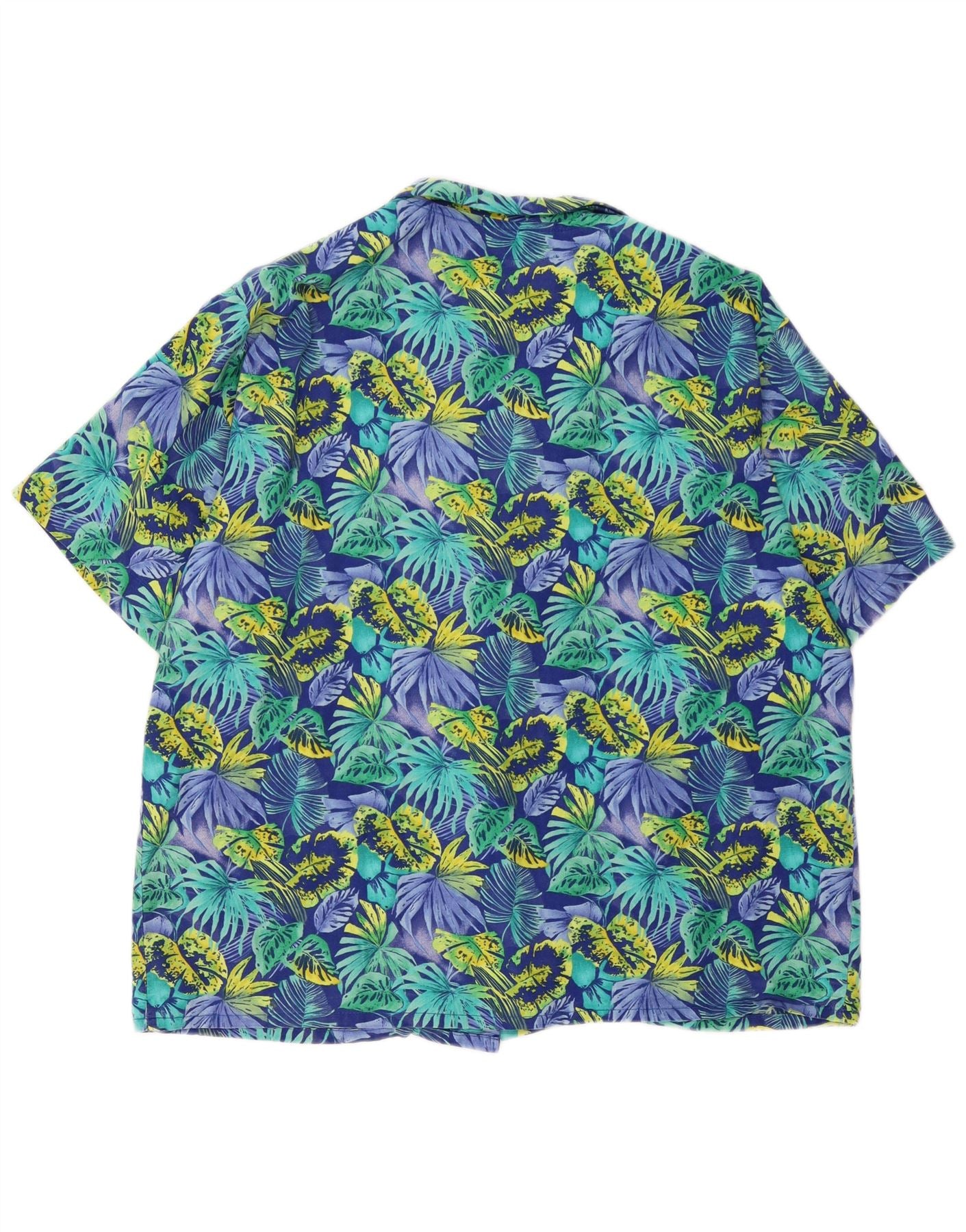 Camisa masculina de manga curta Krazy grande azul floral algodão havaiano