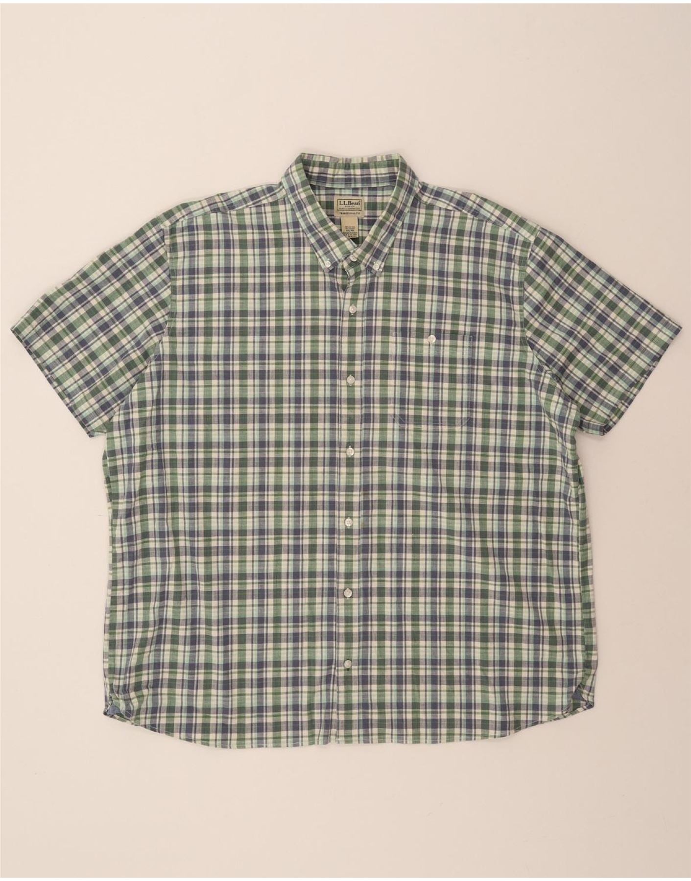 L.L.BEAN Camisa masculina de manga curta com ajuste tradicional 2XL algodão xadrez verde