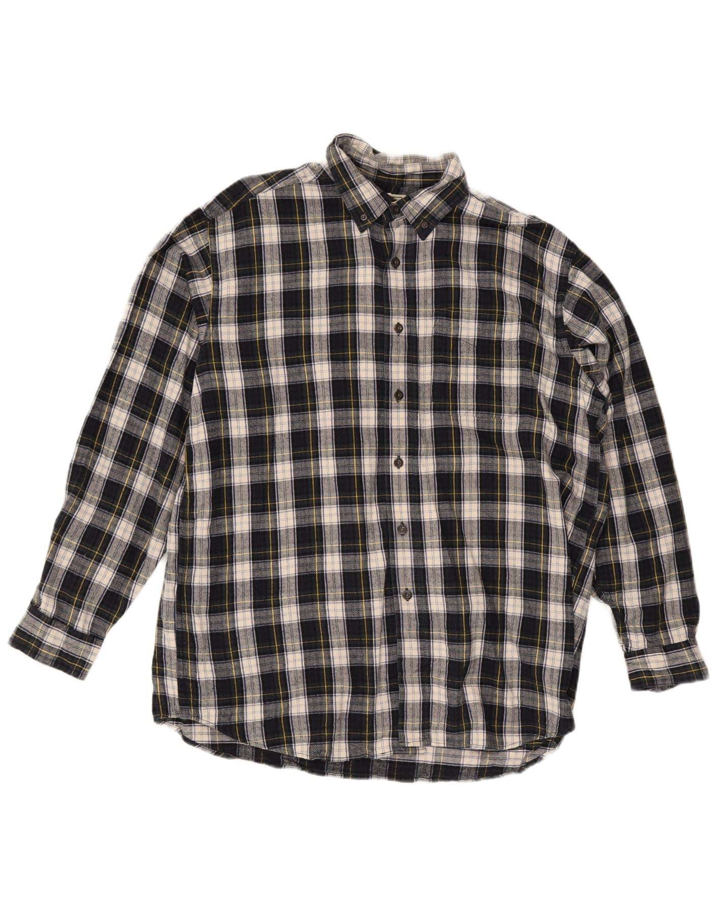 Camisa masculina de flanela L.L.BEAN grande algodão xadrez azul marinho
