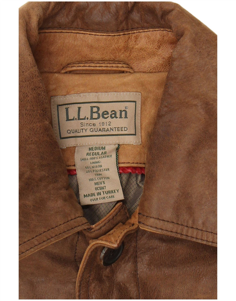L.L.BEAN Mens Regular Fit Leather Jacket UK 38 Medium Brown Leather