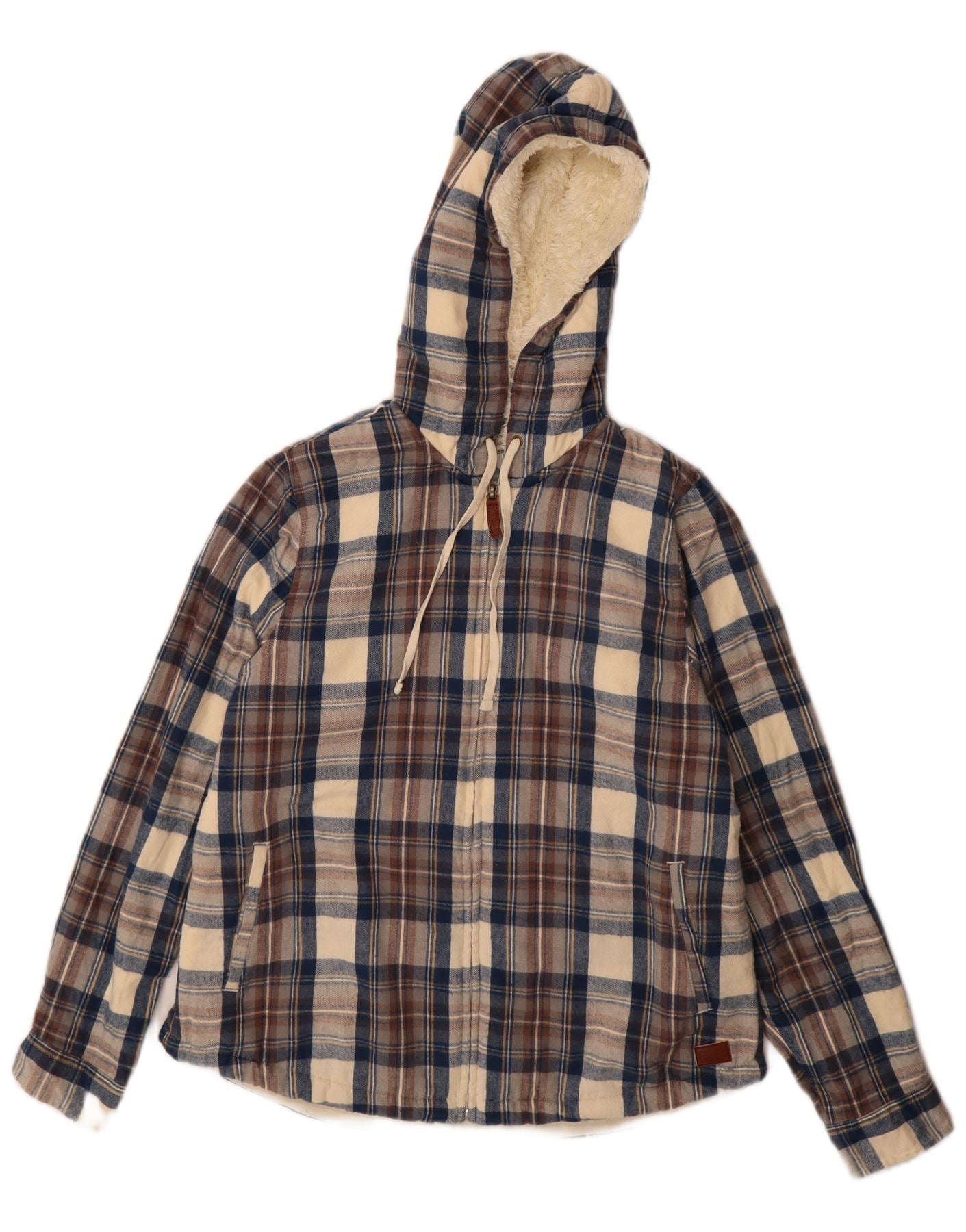 Jaqueta masculina L.L.Bean de ajuste relaxado Sherpa Reino Unido 36 pequeno algodão xadrez azul marinho