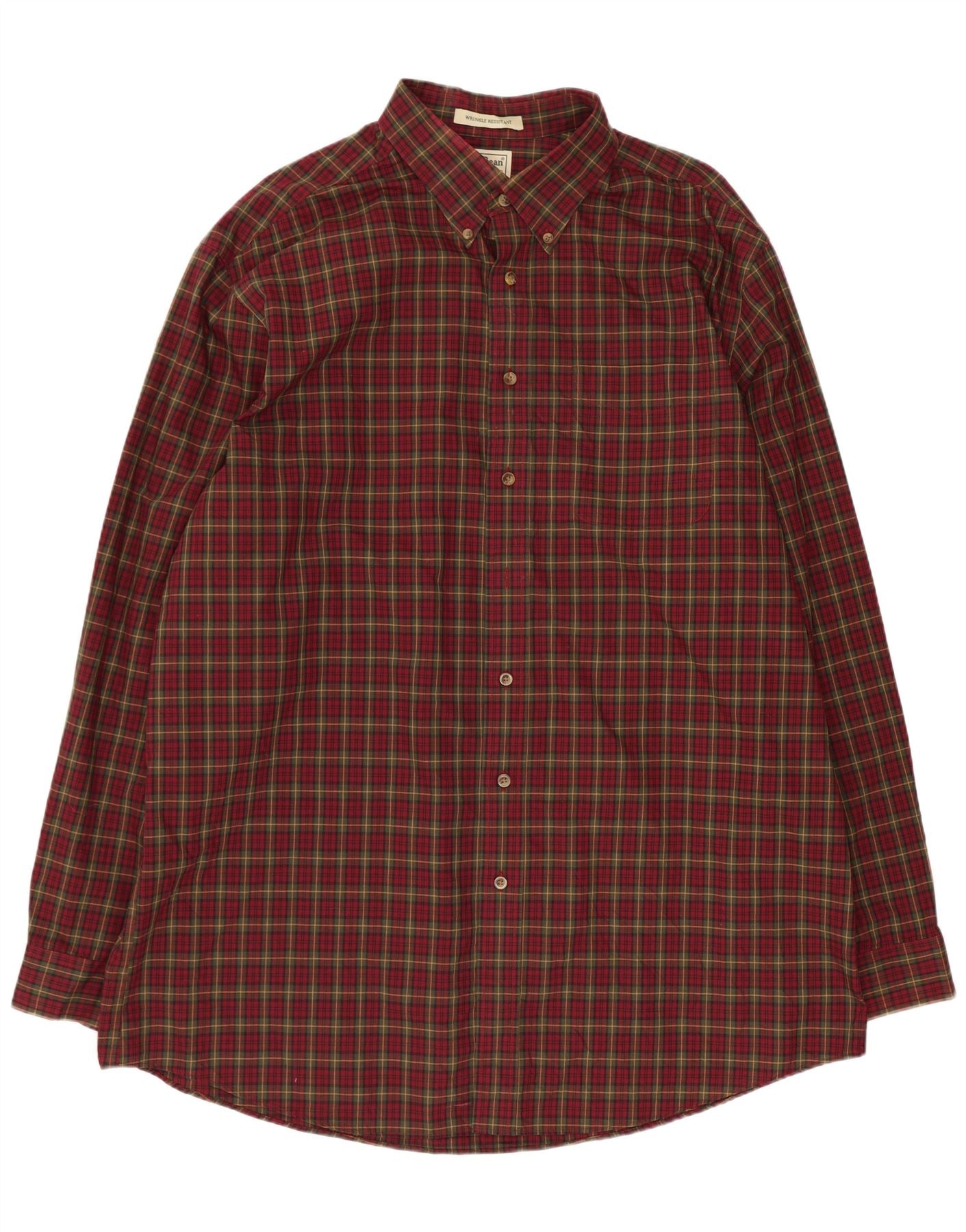 Camisa alta masculina L.L.Bean XL algodão xadrez Borgonha