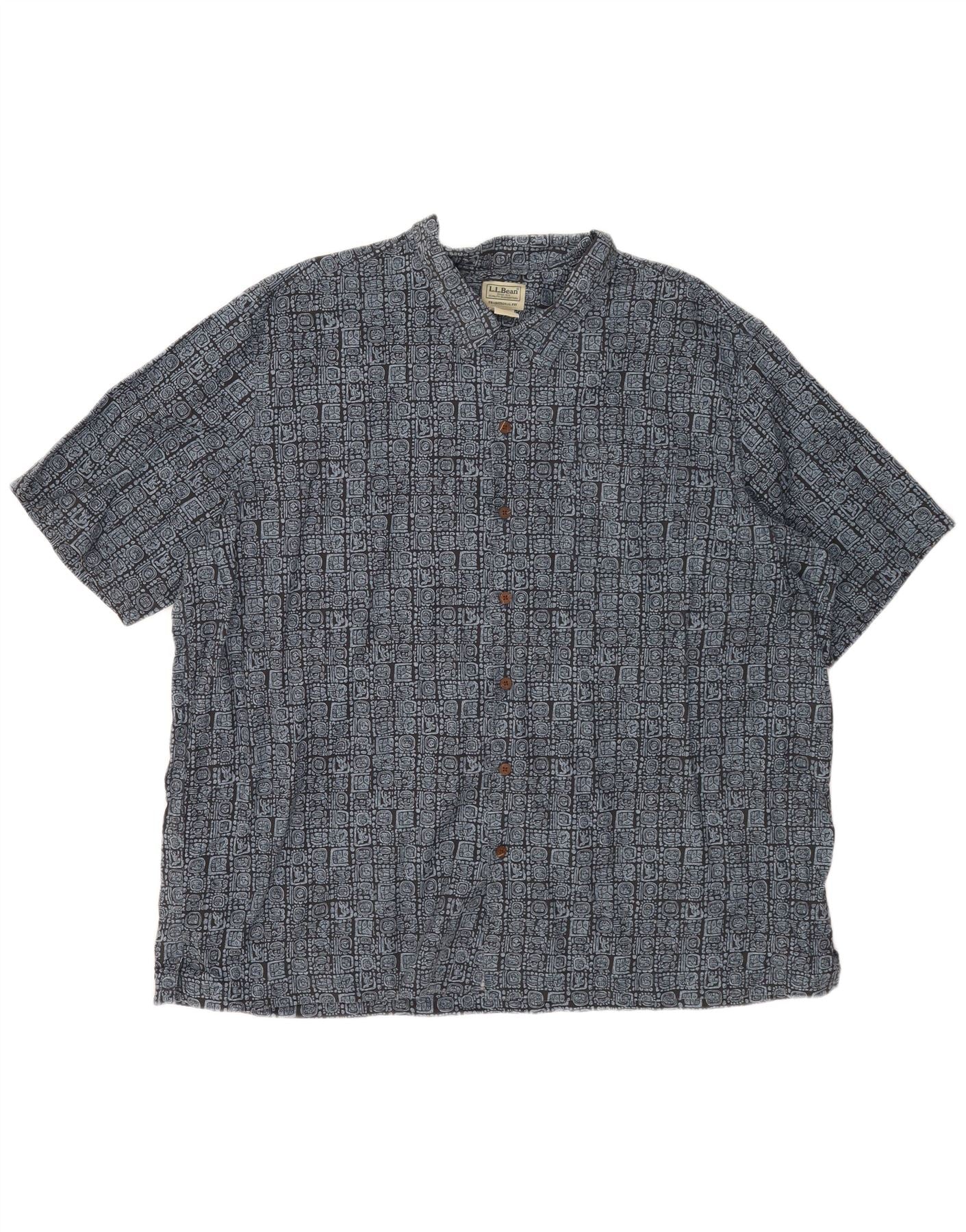 L.L.Bean Camisa masculina de manga curta com ajuste tradicional 2XL azul geométrica