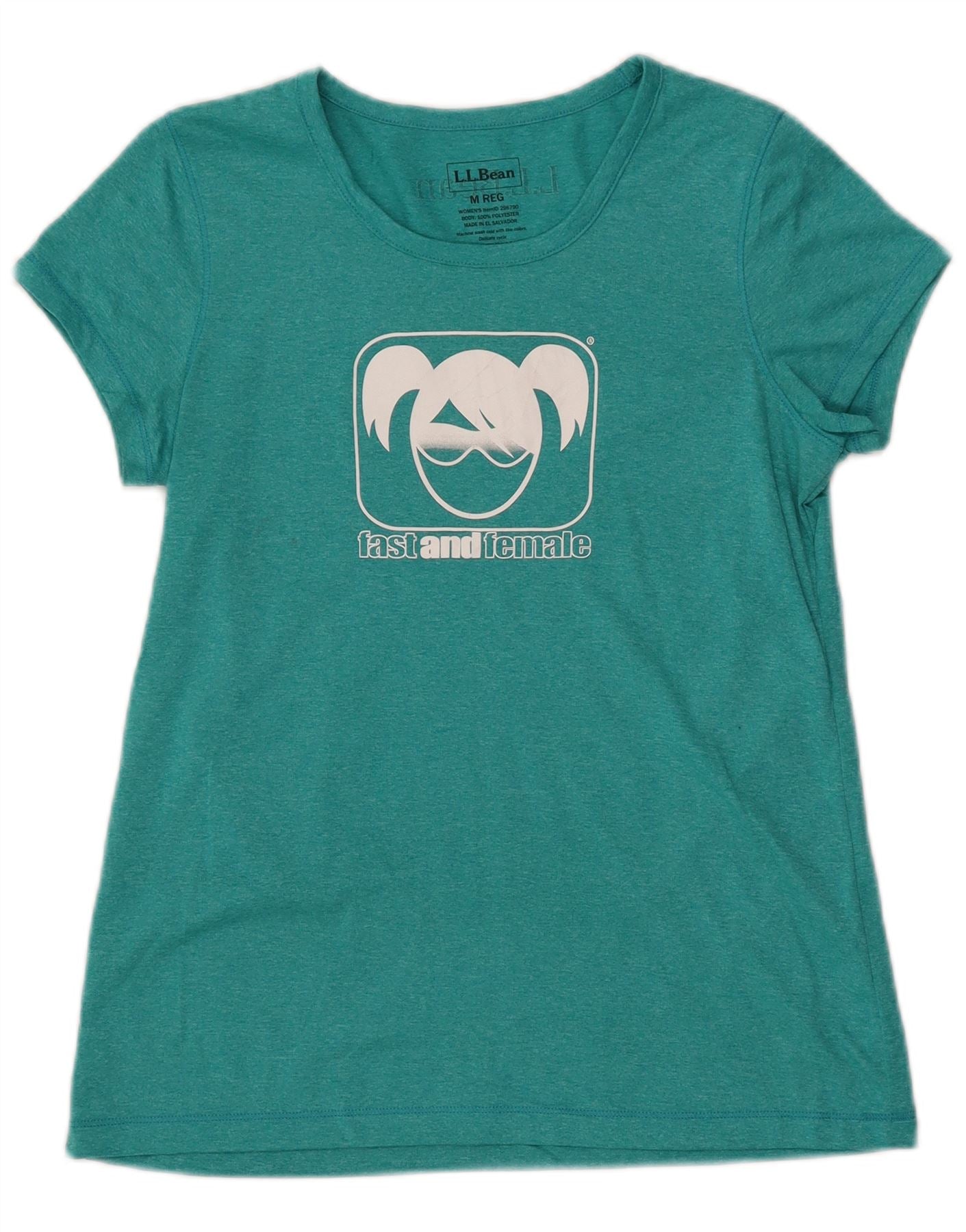 L.L.BEAN Womens Graphic T-Shirt Top UK 12 Medium Turquoise Flecked