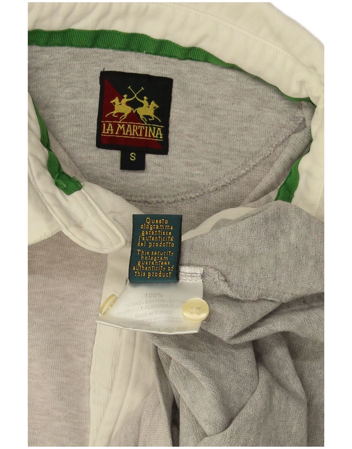 Camisa polo masculina de rugby de manga comprida LA MARTINA pequena cinza manchada de algodão