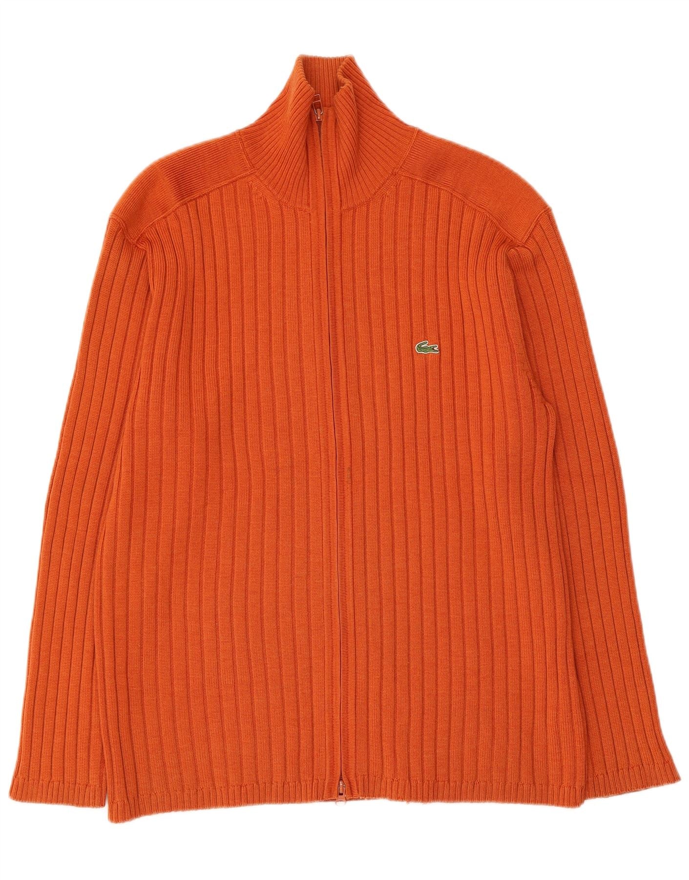 Suéter cardigã masculino LACOSTE tamanho 7 2XL lã laranja