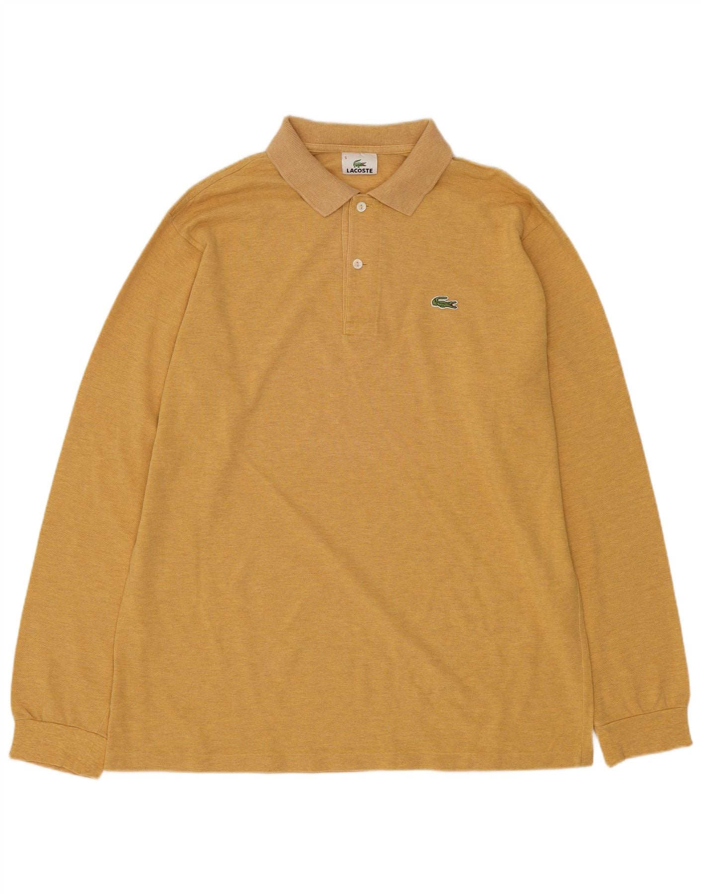 - Descrição da IA: Esta camisa pólo masculina de manga comprida Lacoste é confeccionada em tecido de malha 100% algodão em um rico tom amarelo. Possui decote clássico com gola e fechamento frontal por botões. Mangas compridas proporcionam cobertura extra. O ajuste regular garante um uso confortável. Um logotipo bordado acentua sutilmente o peito, adicionando um toque exclusivo a esta peça atemporal.