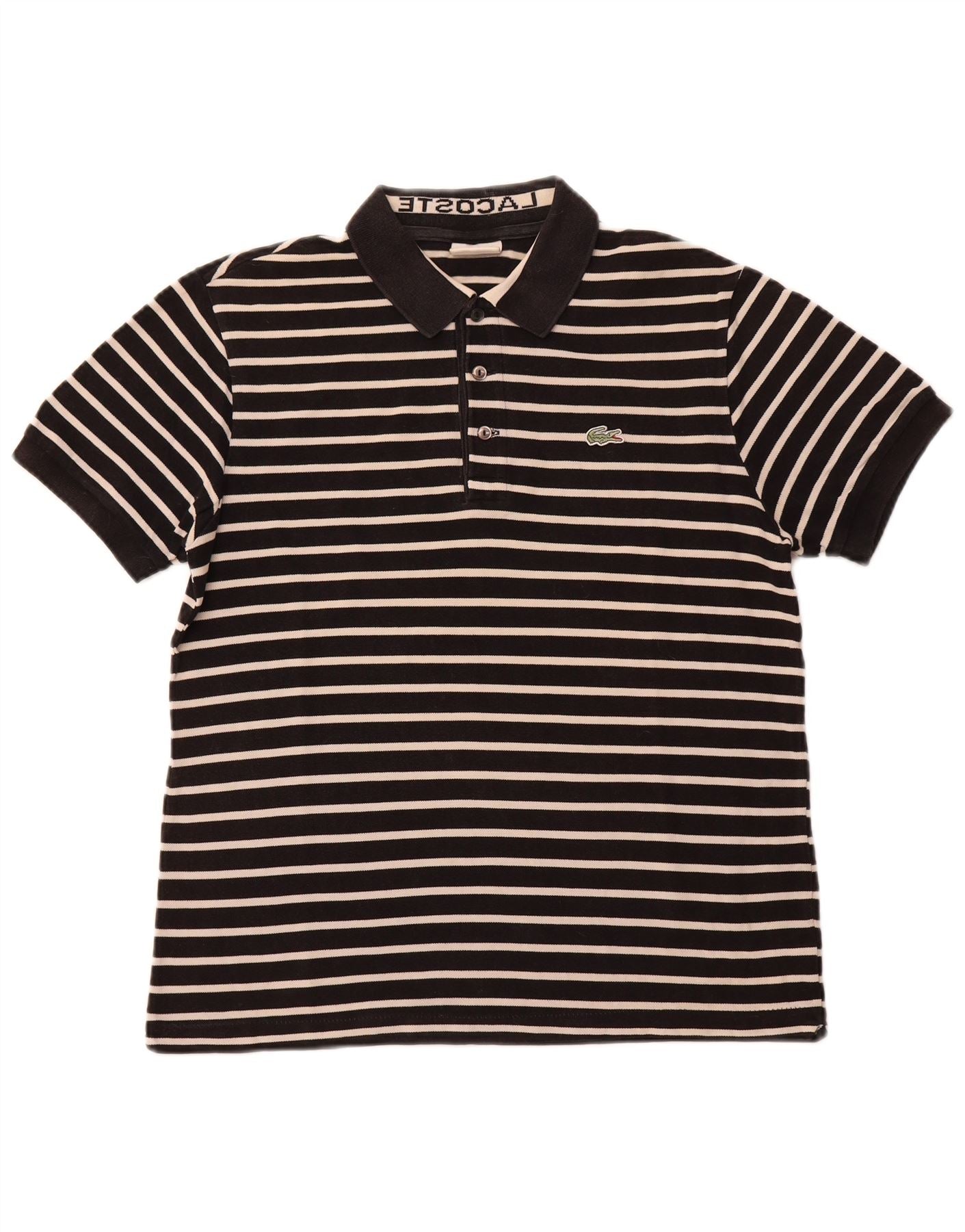 Camisa polo masculina LACOSTE tamanho 6 XL algodão listrado preto