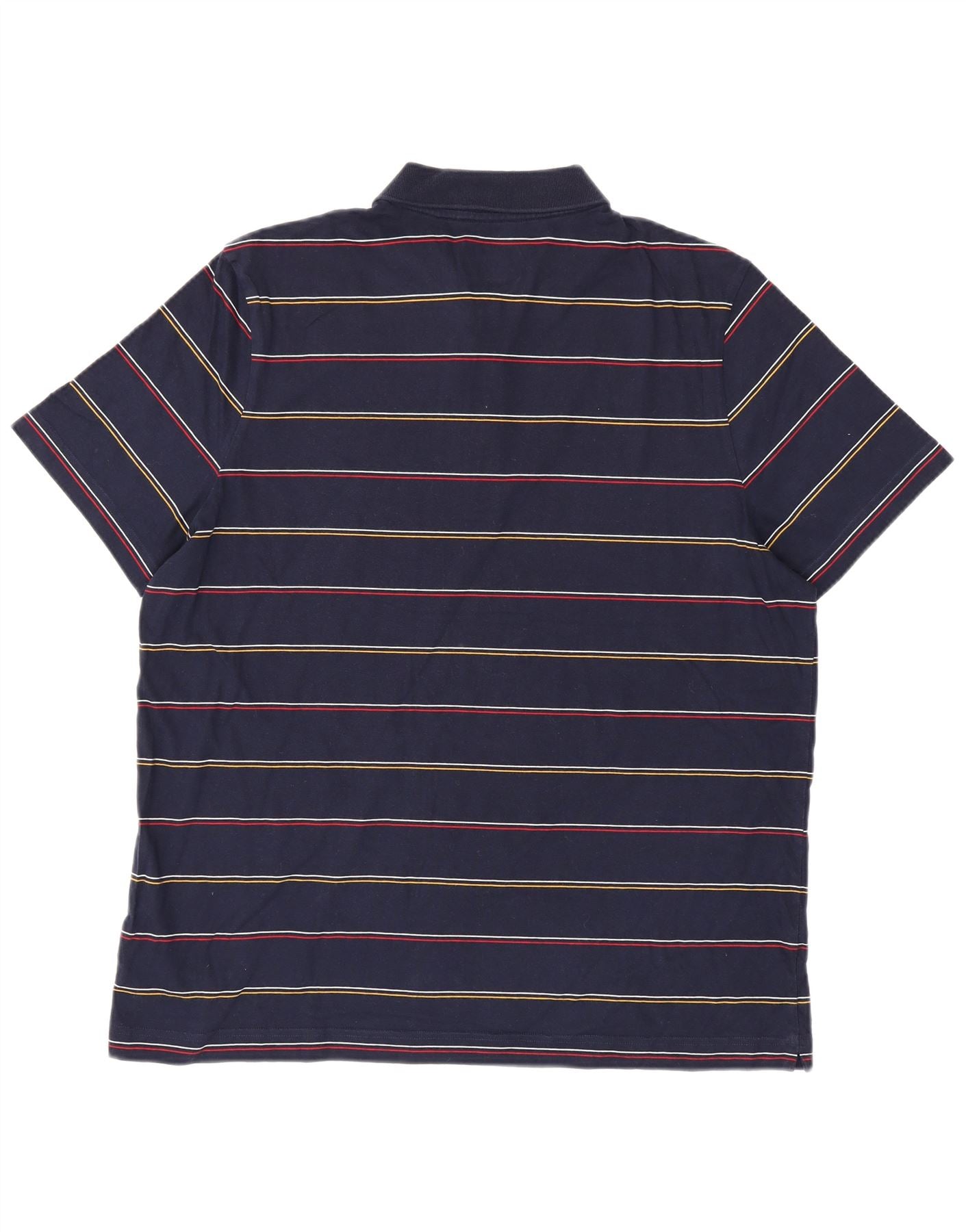 Camisa polo masculina LACOSTE tamanho 7 2XL algodão listrado azul marinho