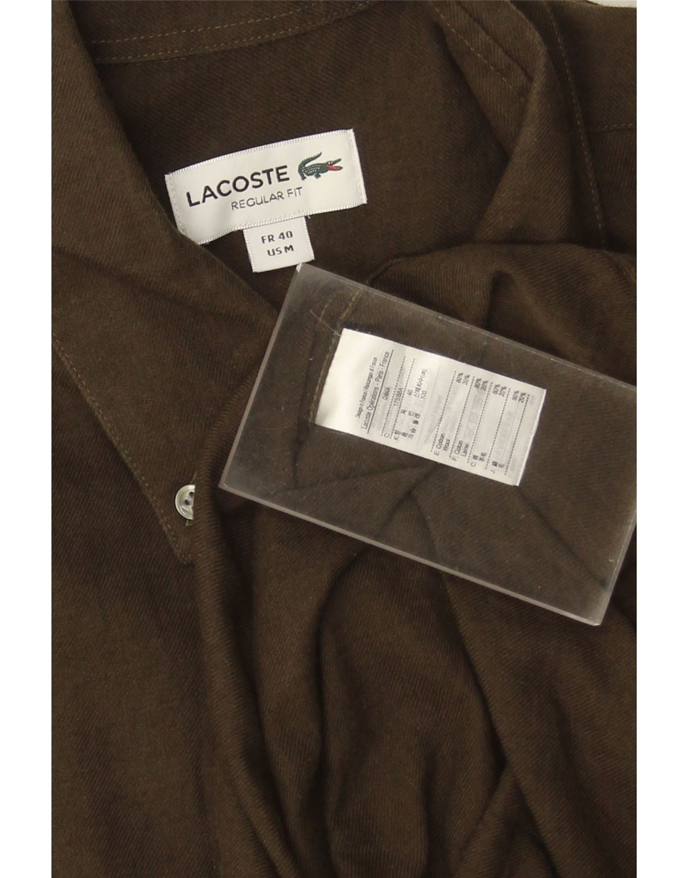 Camisa masculina LACOSTE Regular Fit tamanho 40 algodão cáqui médio