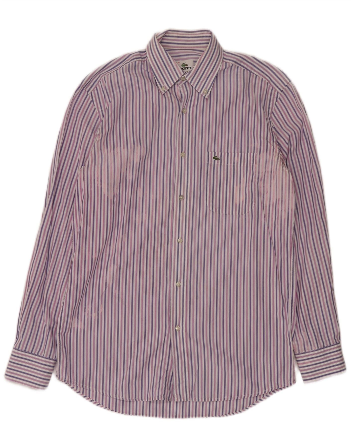 Camisa masculina LACOSTE tamanho 39 algodão listrado roxo médio