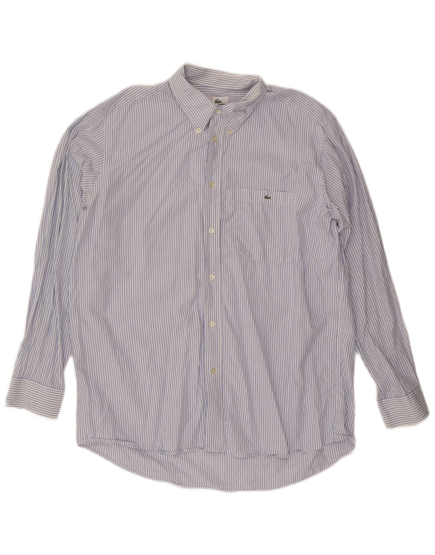 Camisa masculina LACOSTE tamanho 42 grande algodão listrado azul
