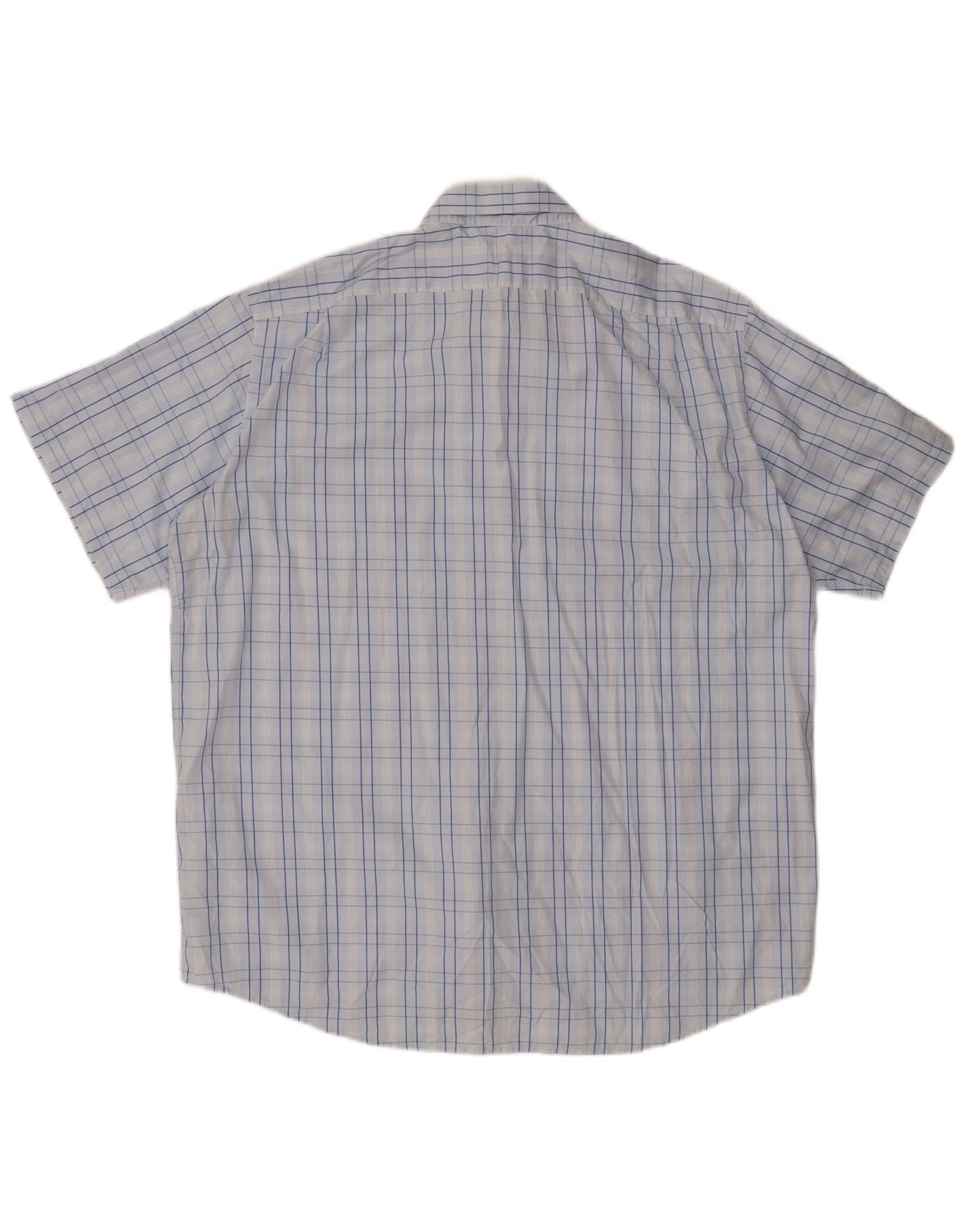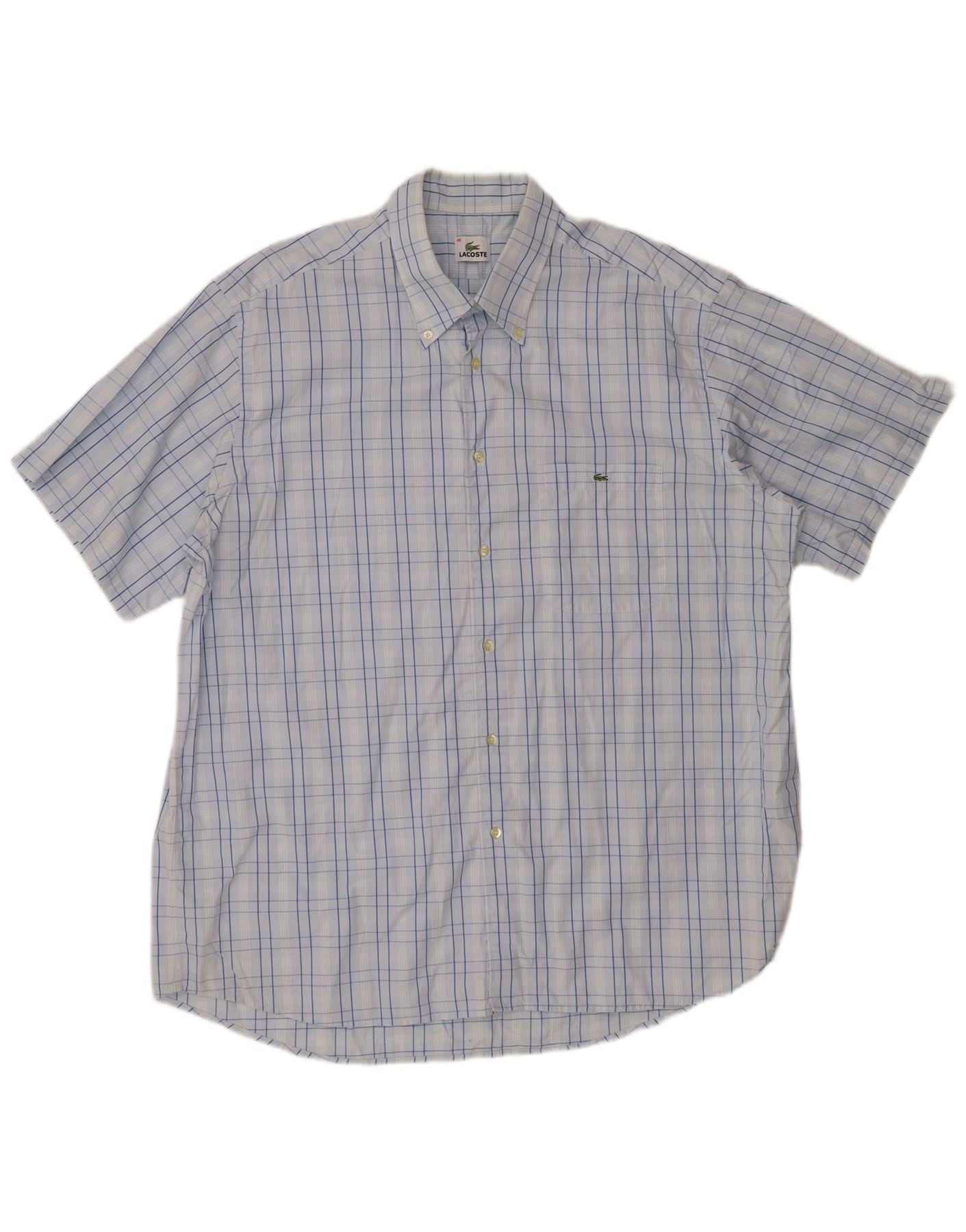 Camisa masculina de manga curta LACOSTE tamanho 46 2XL algodão xadrez azul