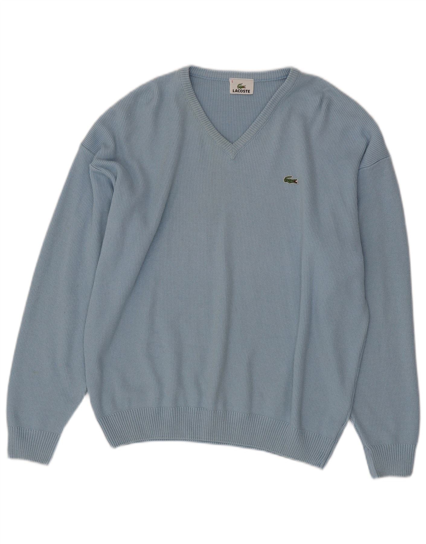 Suéter masculino LACOSTE com decote em V tamanho 5 grande algodão azul