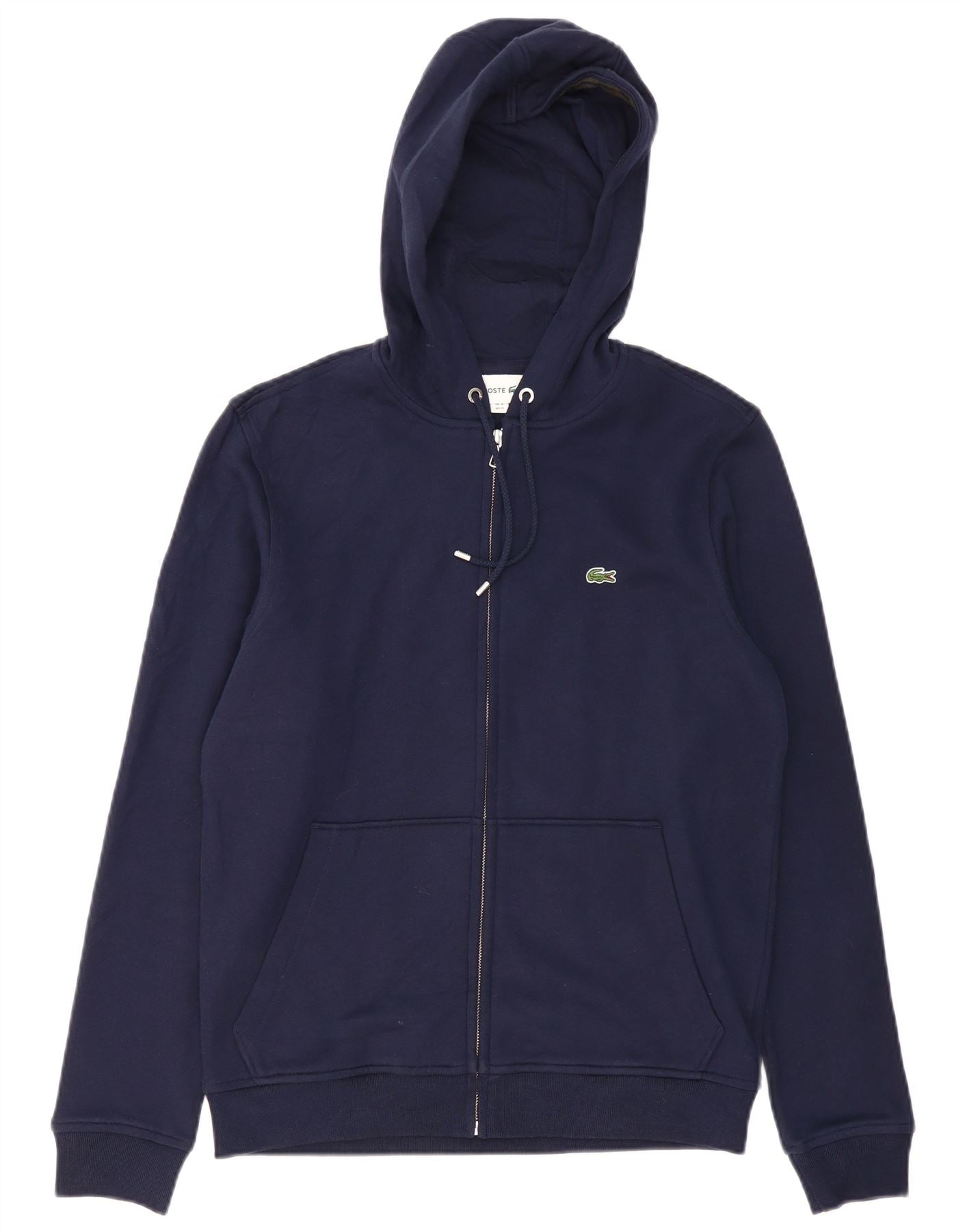 Suéter LACOSTE masculino com capuz e zíper tamanho 4 médio azul marinho