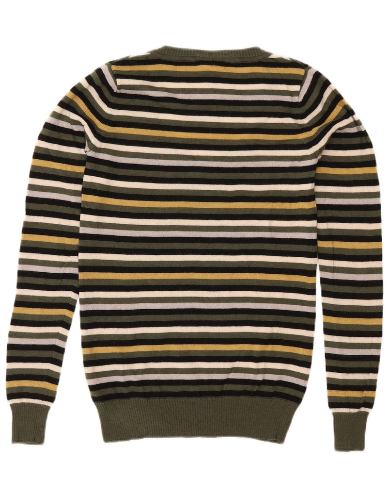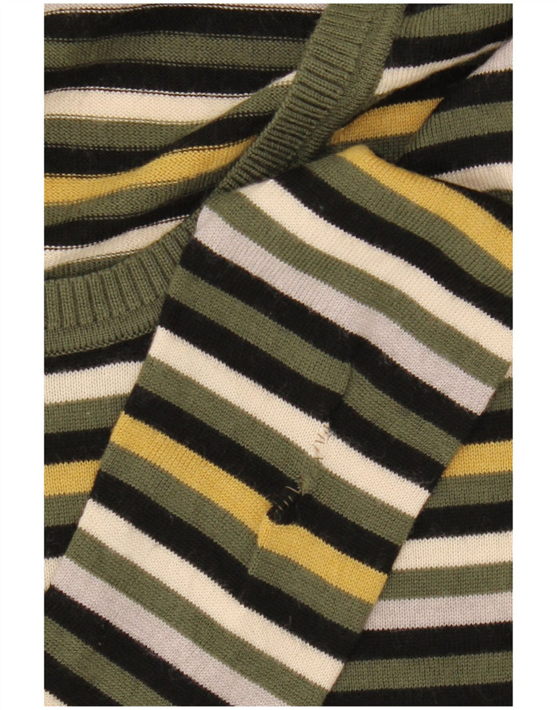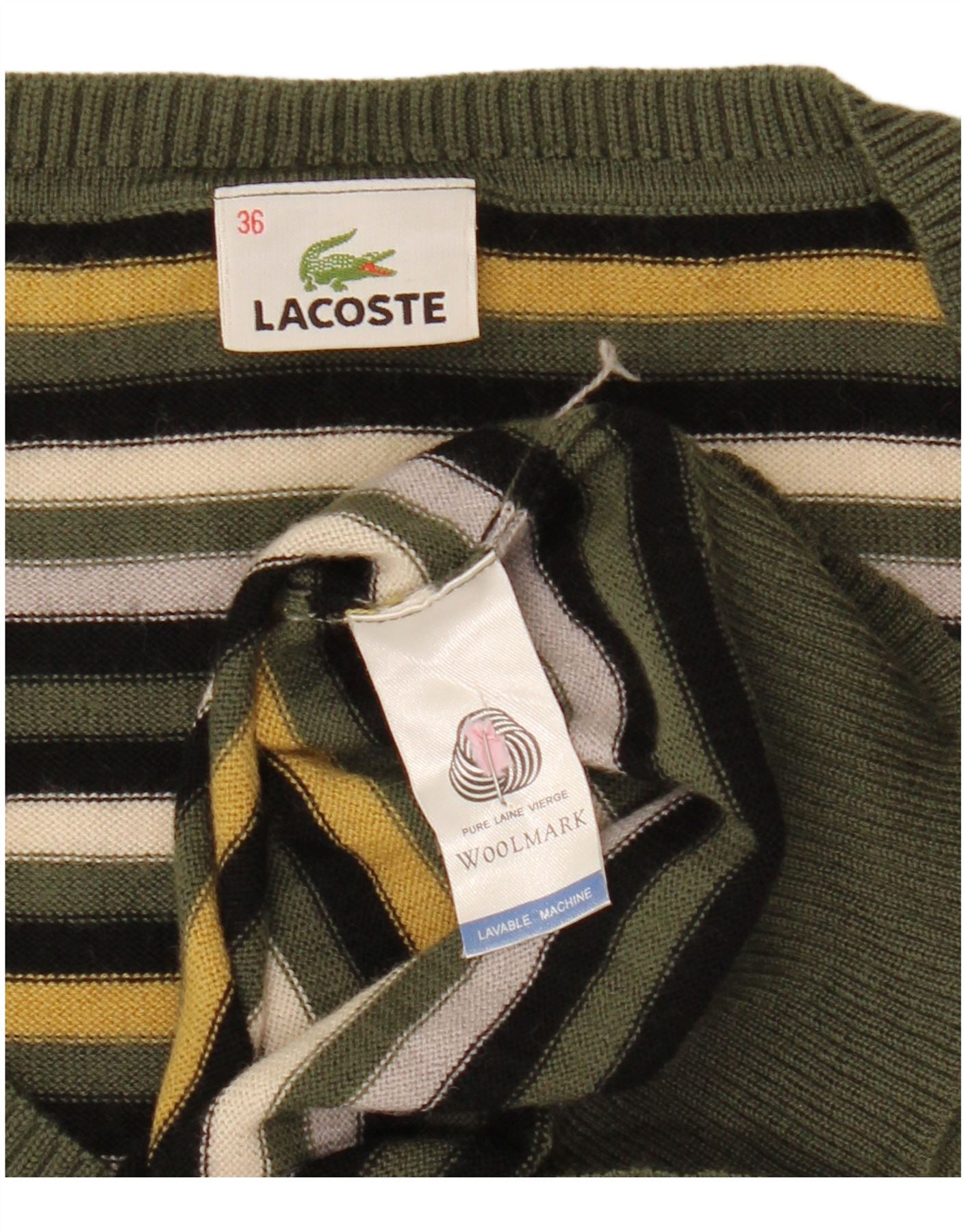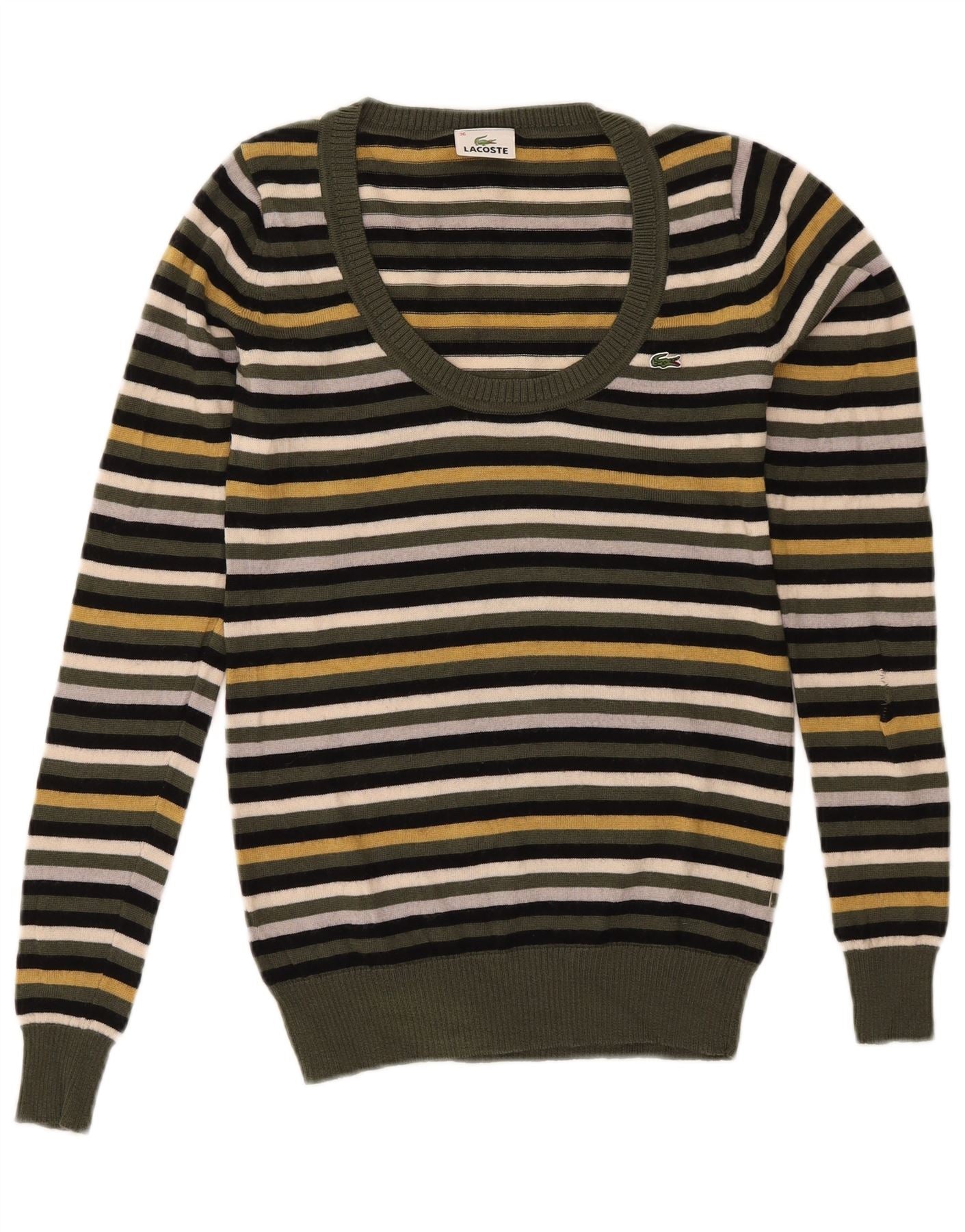 LACOSTE Womens Boat Neck Jumper Sweater Size 36 Small Khaki Striped Wool