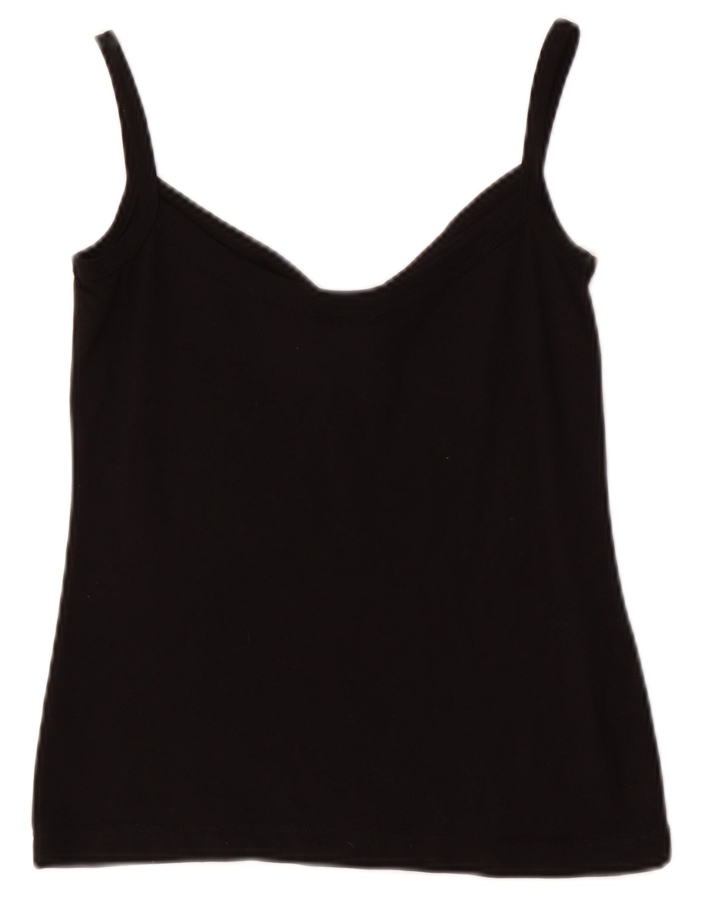 LACOSTE Womens Cami Top UK 8 Pequeno Algodão Preto