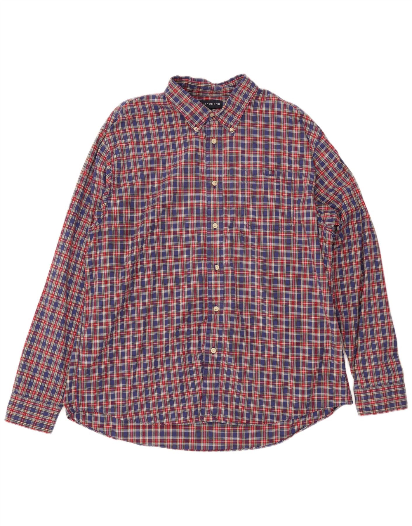 Camisa masculina de flanela LANDS END XL algodão xadrez vermelho
