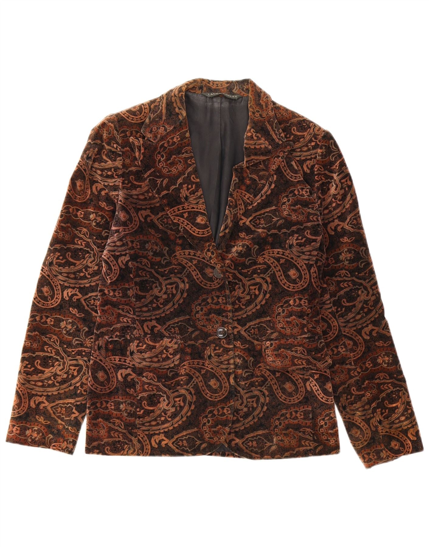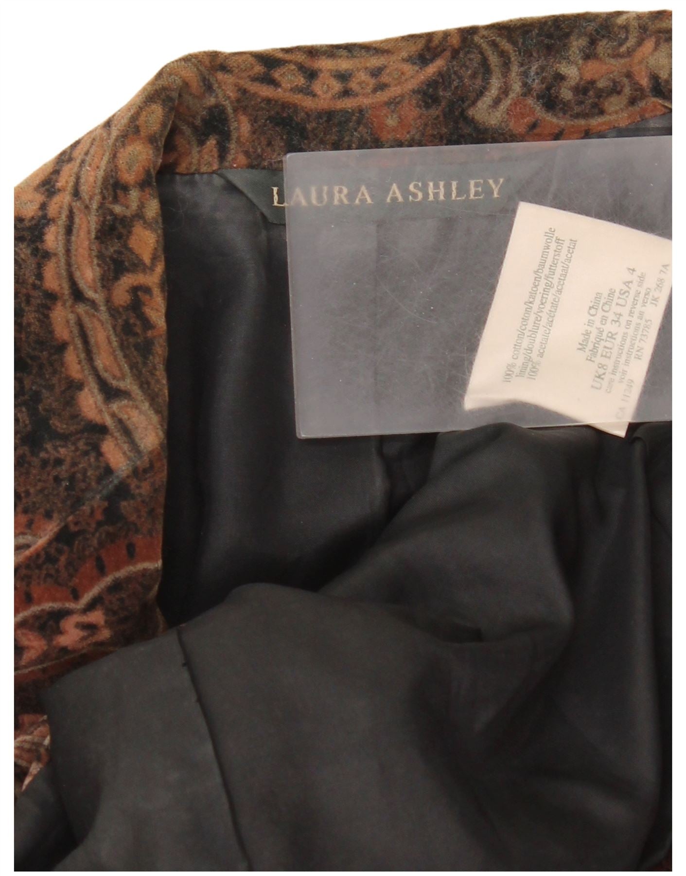 Laura Ashley jaqueta blazer feminina de veludo com 2 botões Reino Unido 8 pequena marrom paisley