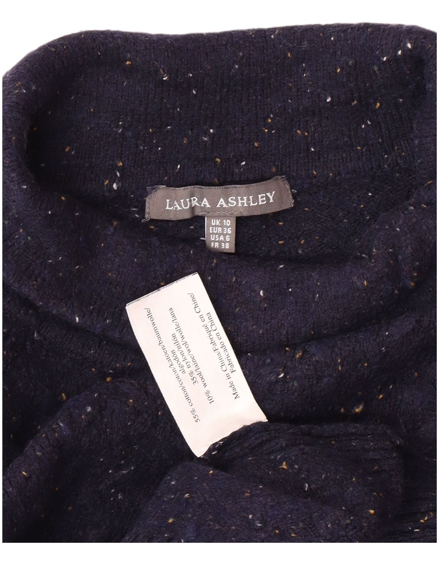 Suéter feminino LAURA ASHLEY com gola redonda Reino Unido 10 pequeno azul marinho manchado