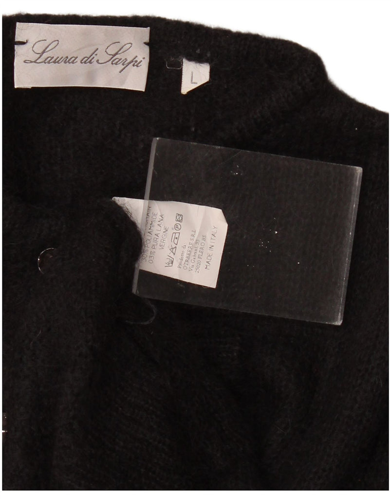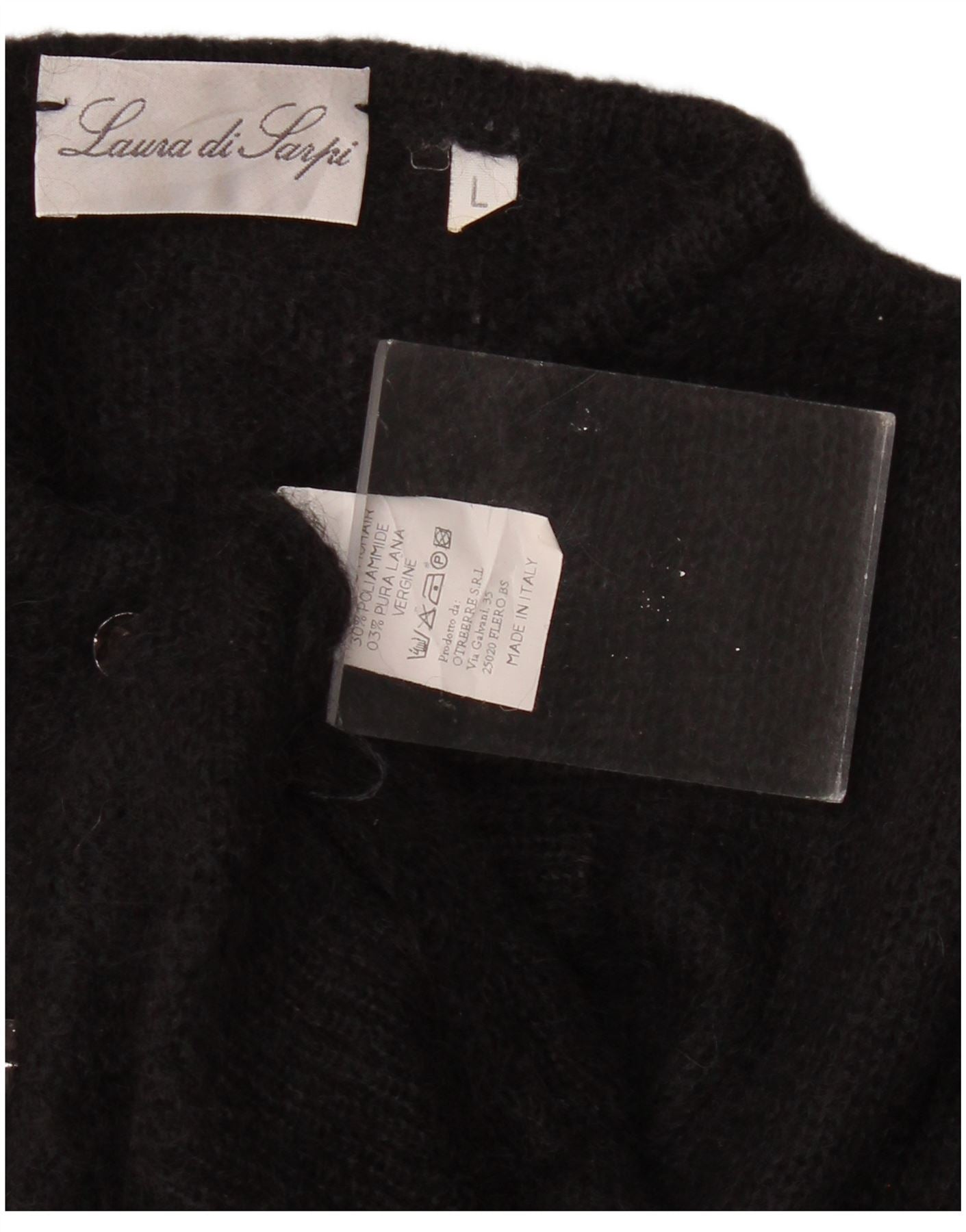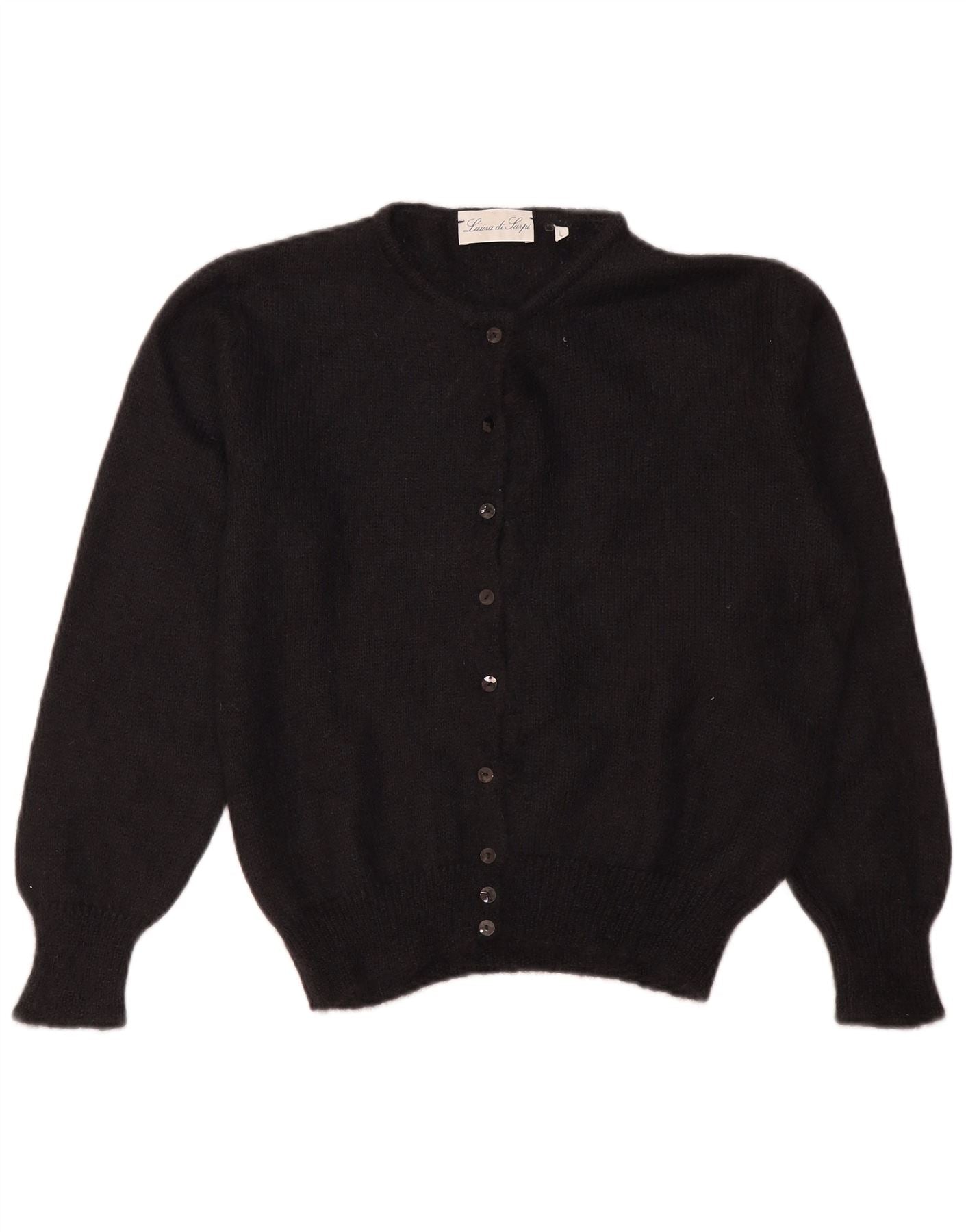 Suéter cardigã feminino LAURA DI SARPI Reino Unido 16 grande mohair preto