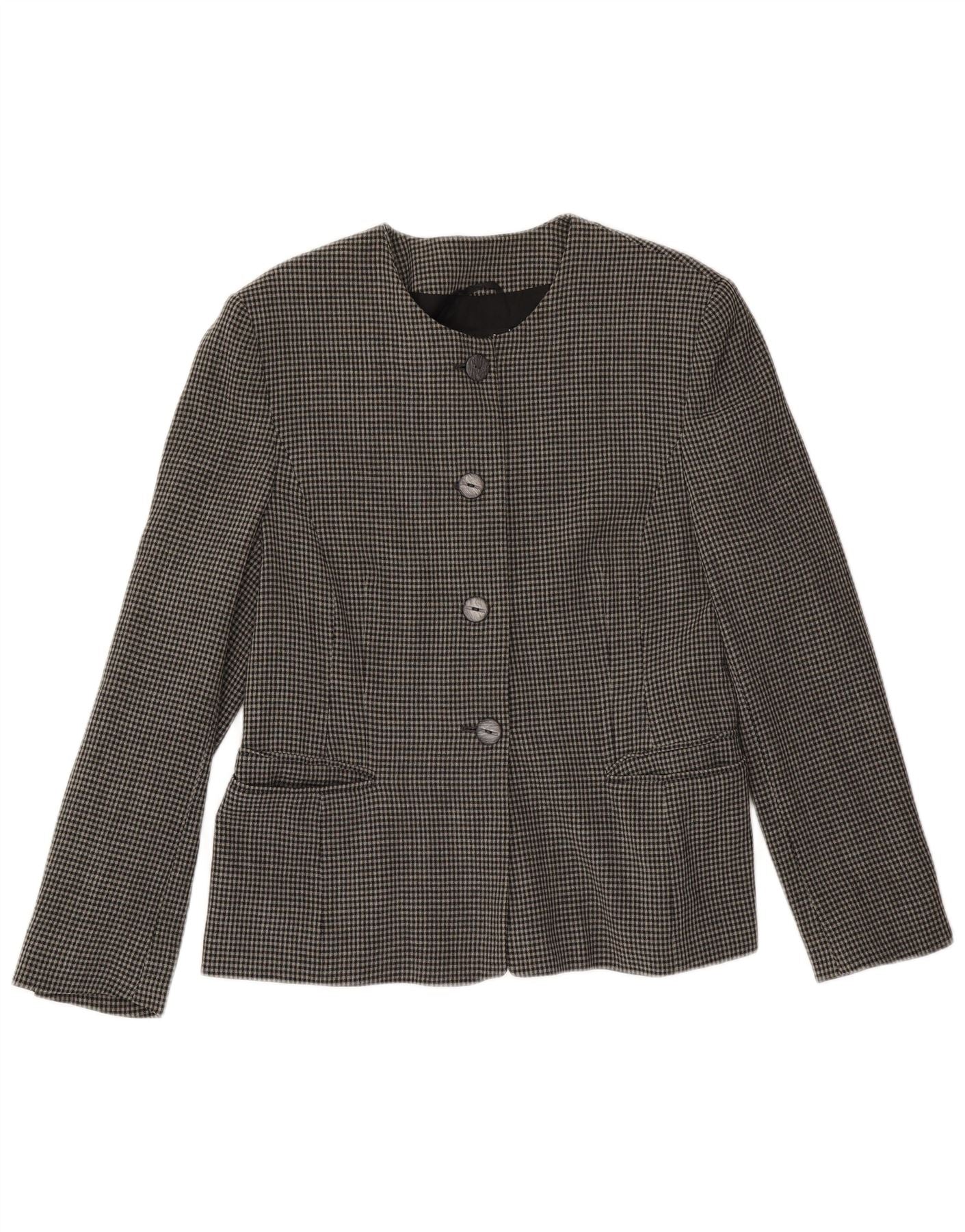 Jaqueta blazer feminina LAUREL com 4 botões UE 42 grande lã cinza houndstooth