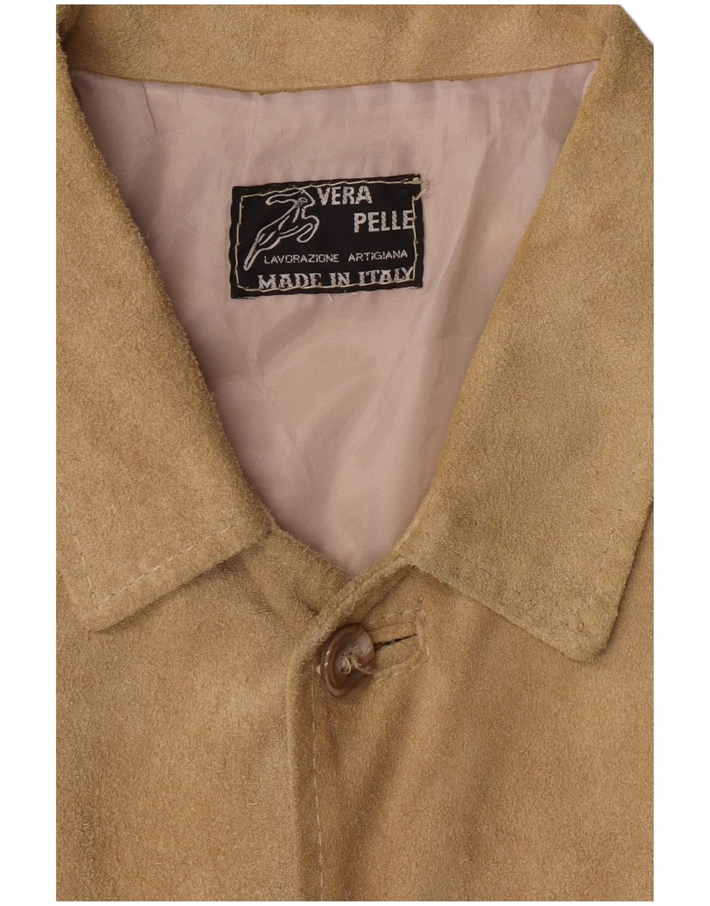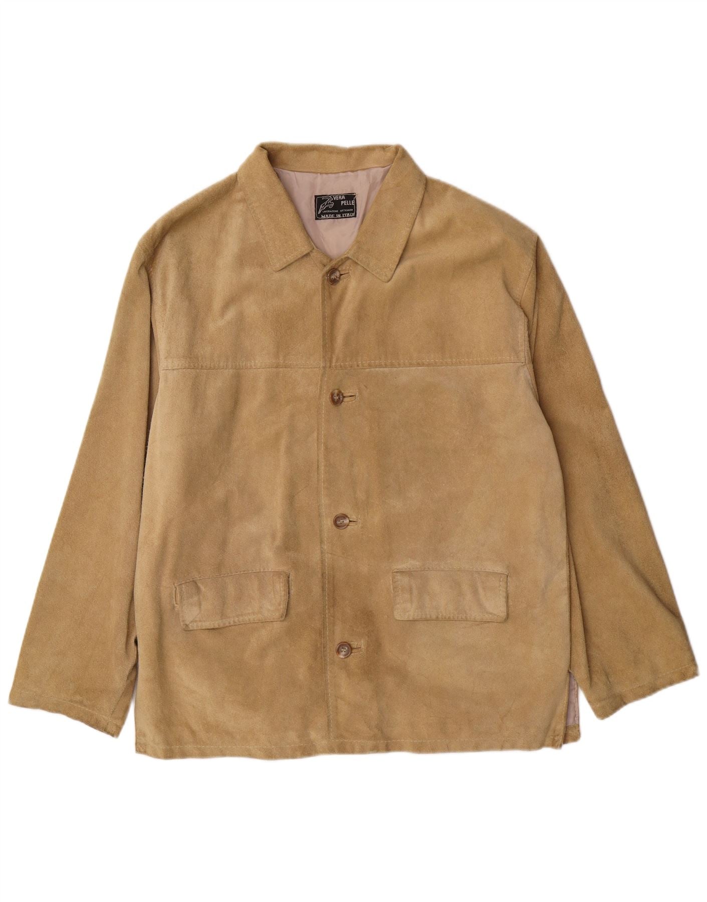 Jaqueta masculina de camurça LAVORAZIONE ARTIGIANA Reino Unido 38 couro bege médio