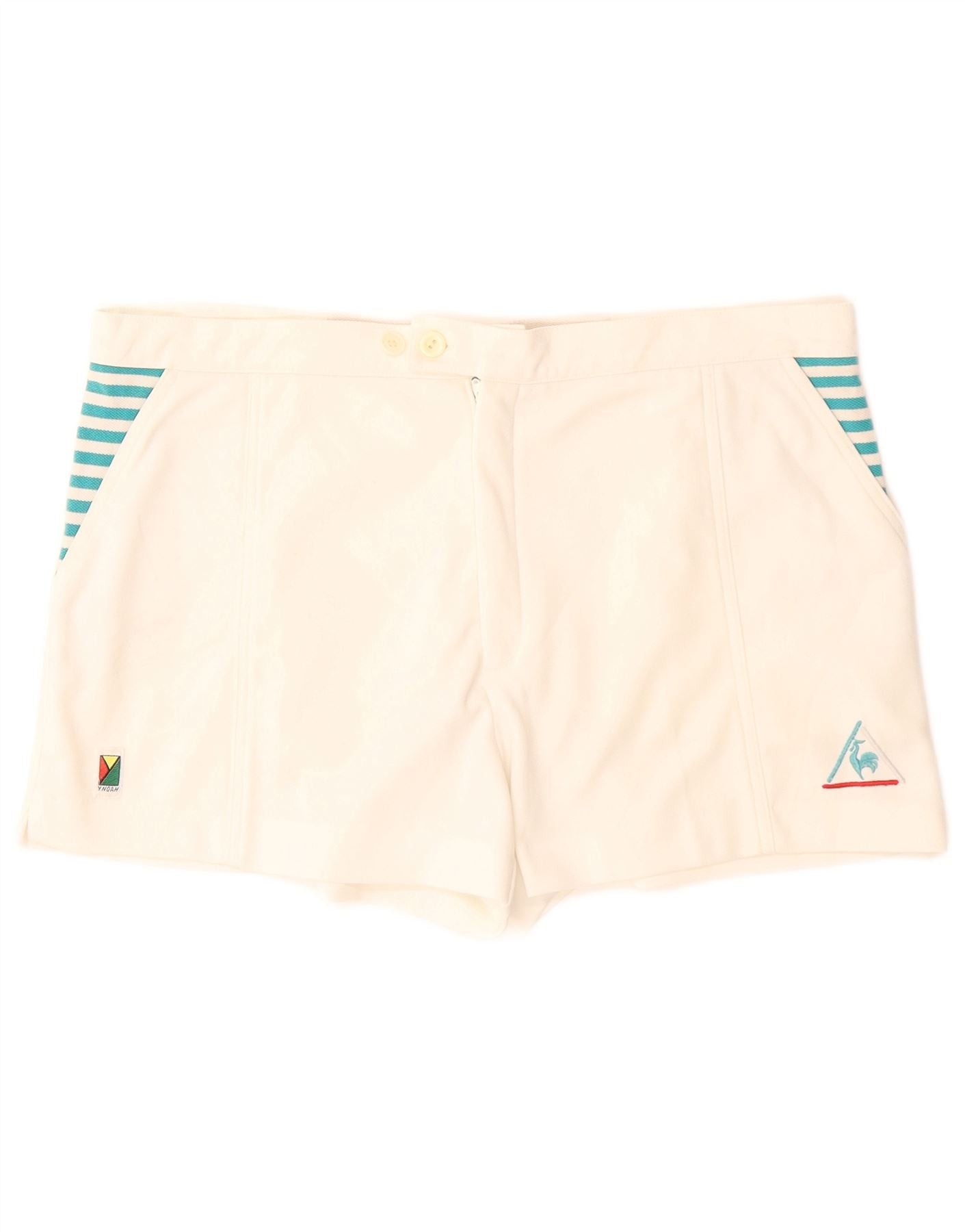 LE COQ SPORTIF Shorts chino feminino IT 38 XS W32 poliéster listrado branco