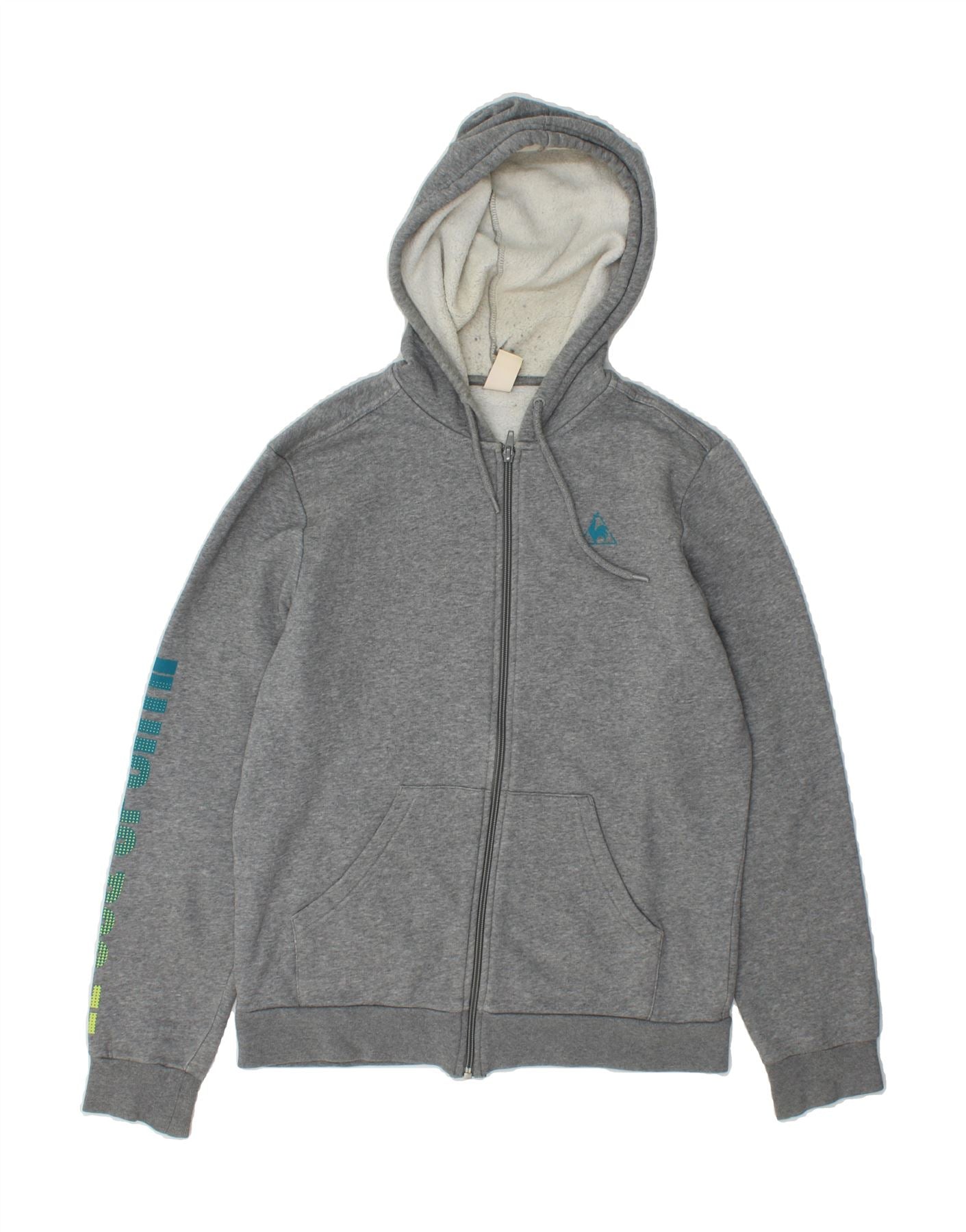 LE COQ SPORTIF Suéter masculino com capuz e zíper gráfico pequeno algodão cinza