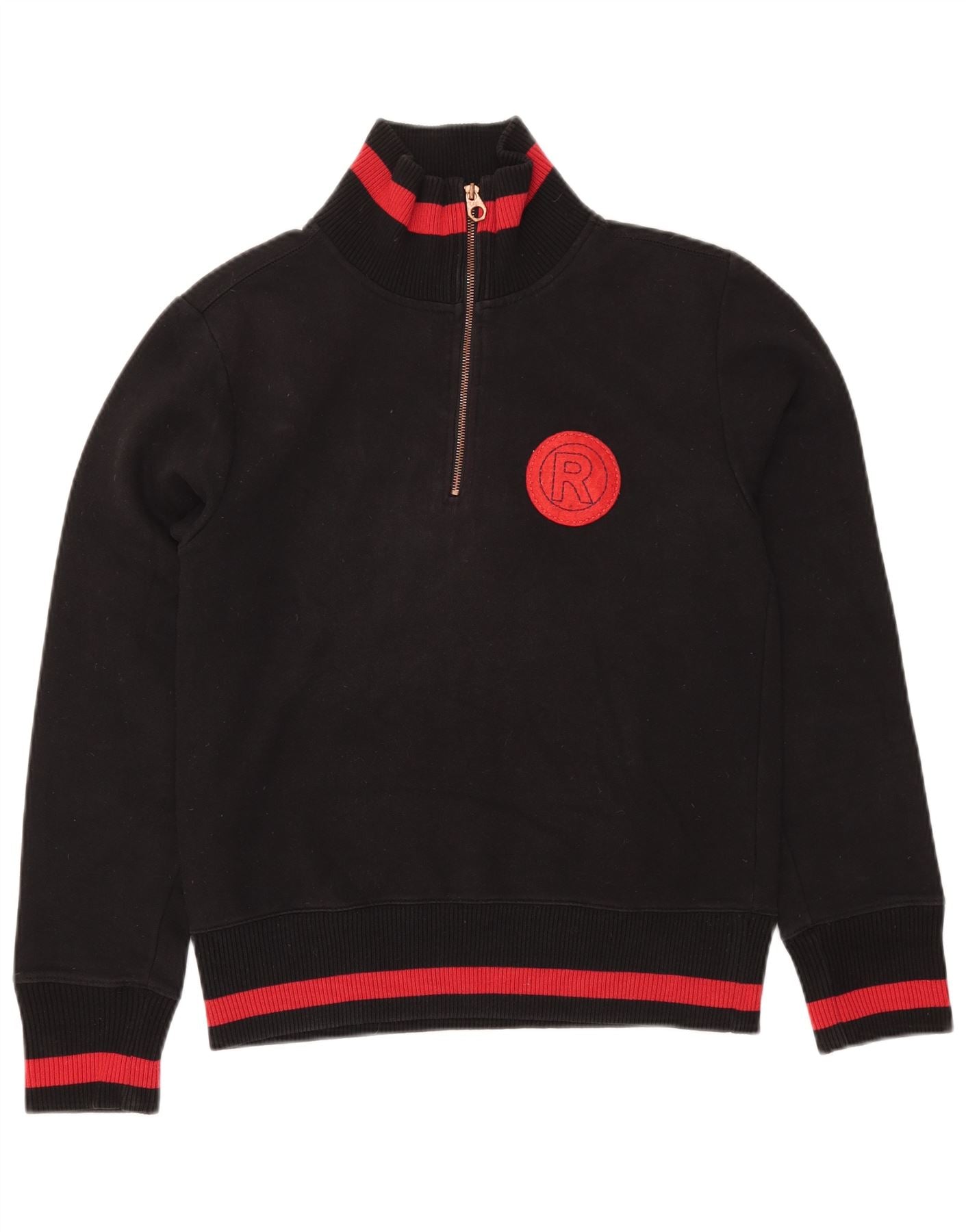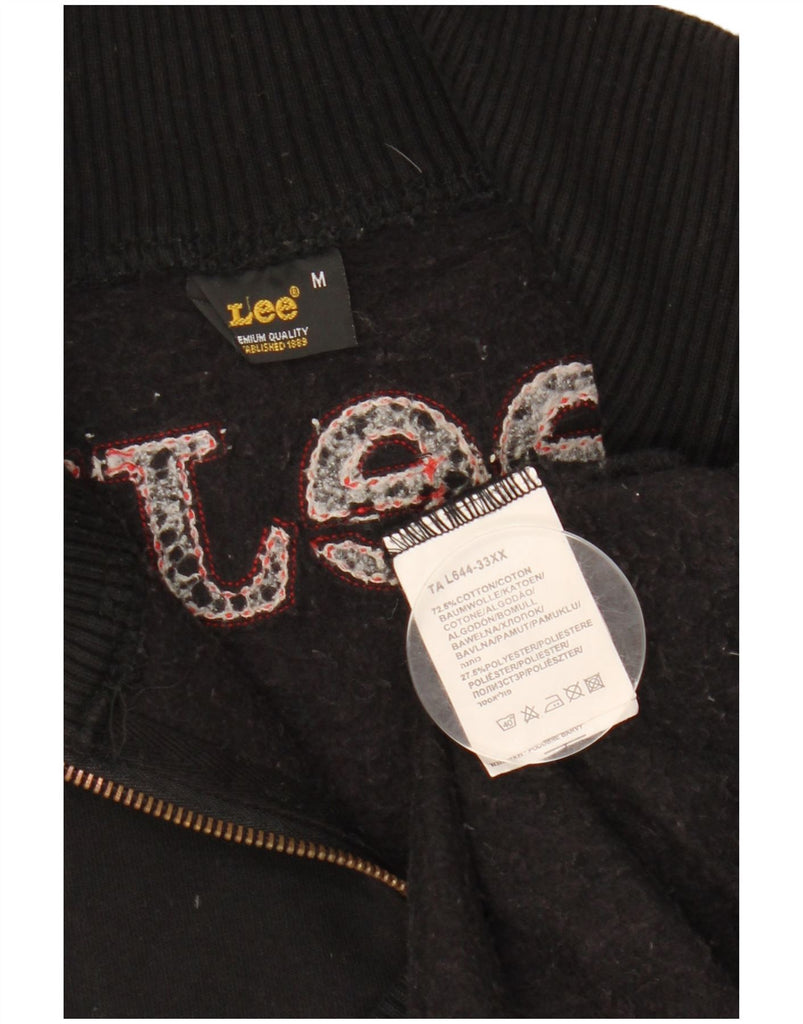 LEE Mens Graphic Zip Neck Jumper Sweater Medium Black Colourblock Cotton