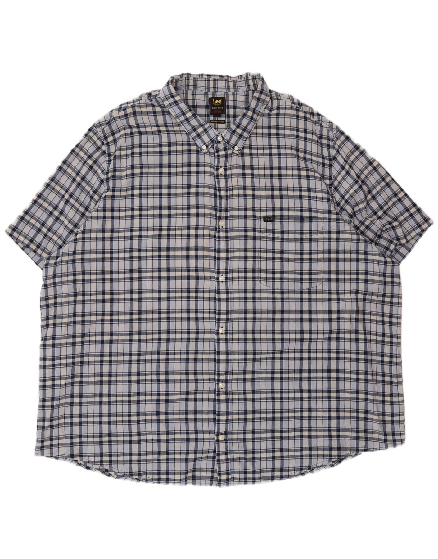 Camisa masculina Lee de manga curta regular fit 5XL algodão xadrez azul