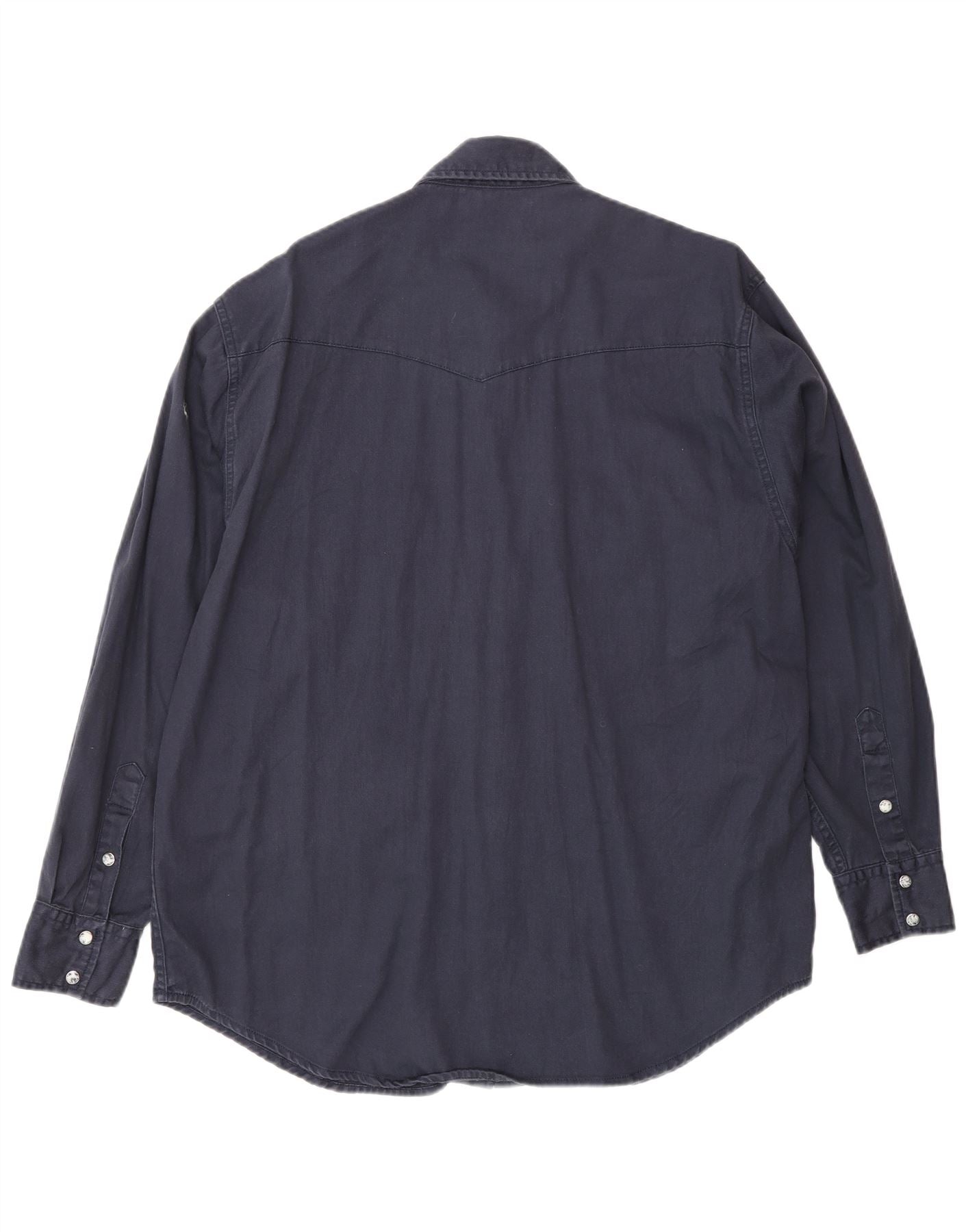 - Descrição da IA: Esta camisa jeans masculina Lee é confeccionada em tecido 100 algodão em um rico azul marinho. Possui um decote clássico com gola e botões frontais completos com botões de pressão. As mangas compridas terminam em punhos abotoados. Dois bolsos no peito com fecho de pressão acrescentam um detalhe prático de inspiração ocidental. O ajuste regular garante um uso confortável, incorporando um estilo utilitário atemporal.