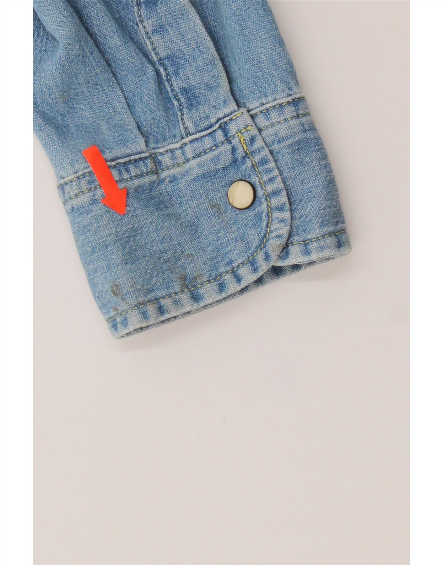 - Condição: Condição de uso razoável: o item foi usado com frequência e pode ter inúmeras falhas - Cor desbotada. marca na parte inferior da frente do corpo. marca no punho.