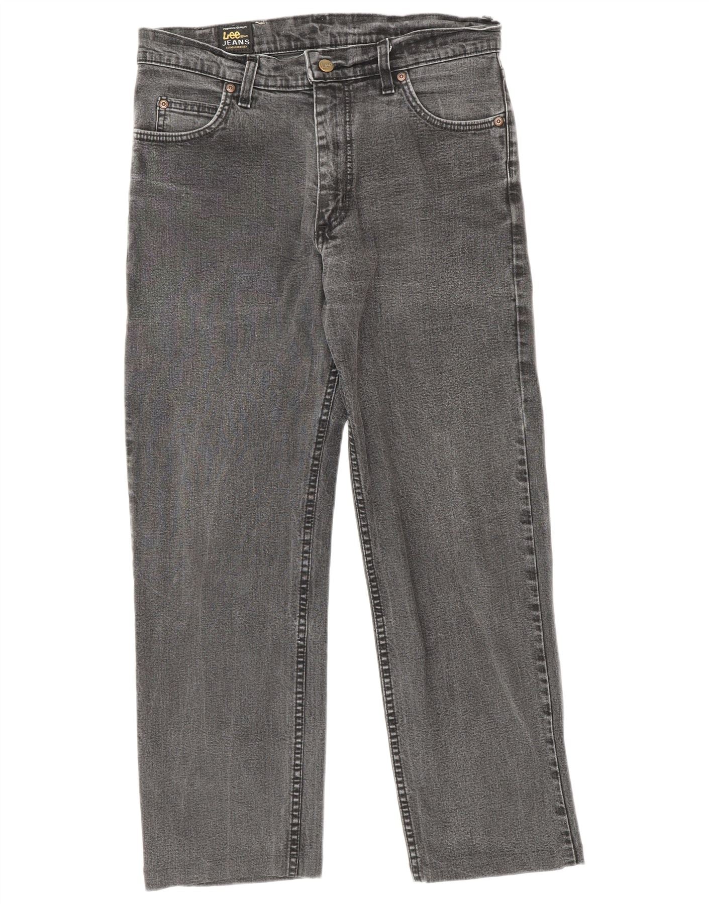 - Descrição da IA: Este jeans reto feminino Lee é confeccionado em jeans stretch cinza, oferecendo conforto e um visual clássico. Eles apresentam cintura média e fecho de botão para um ajuste seguro. O corte reto da perna proporciona um ajuste regular na perna. O estilo clássico de cinco bolsos e um logotipo sutil da marca completam o design.