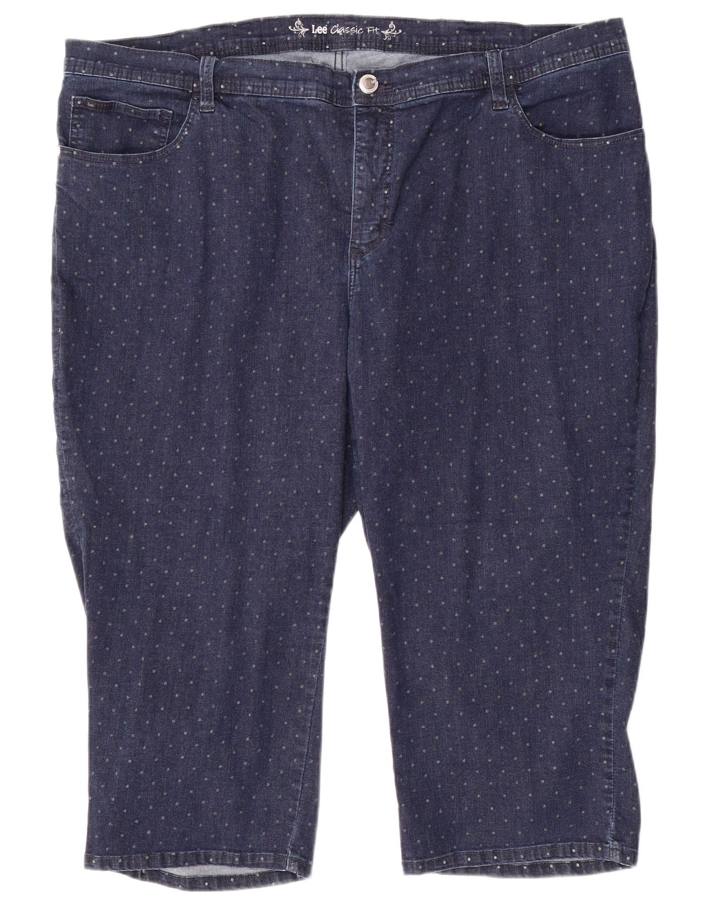 Calça jeans feminina LEE Classic Fit Capri US 24 4XL W48 L20 algodão manchado azul