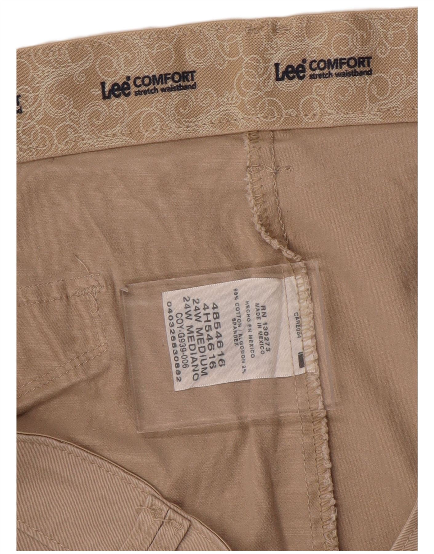 Lee Calça feminina casual com ajuste confortável US 24 4XL W48 L30 algodão bege