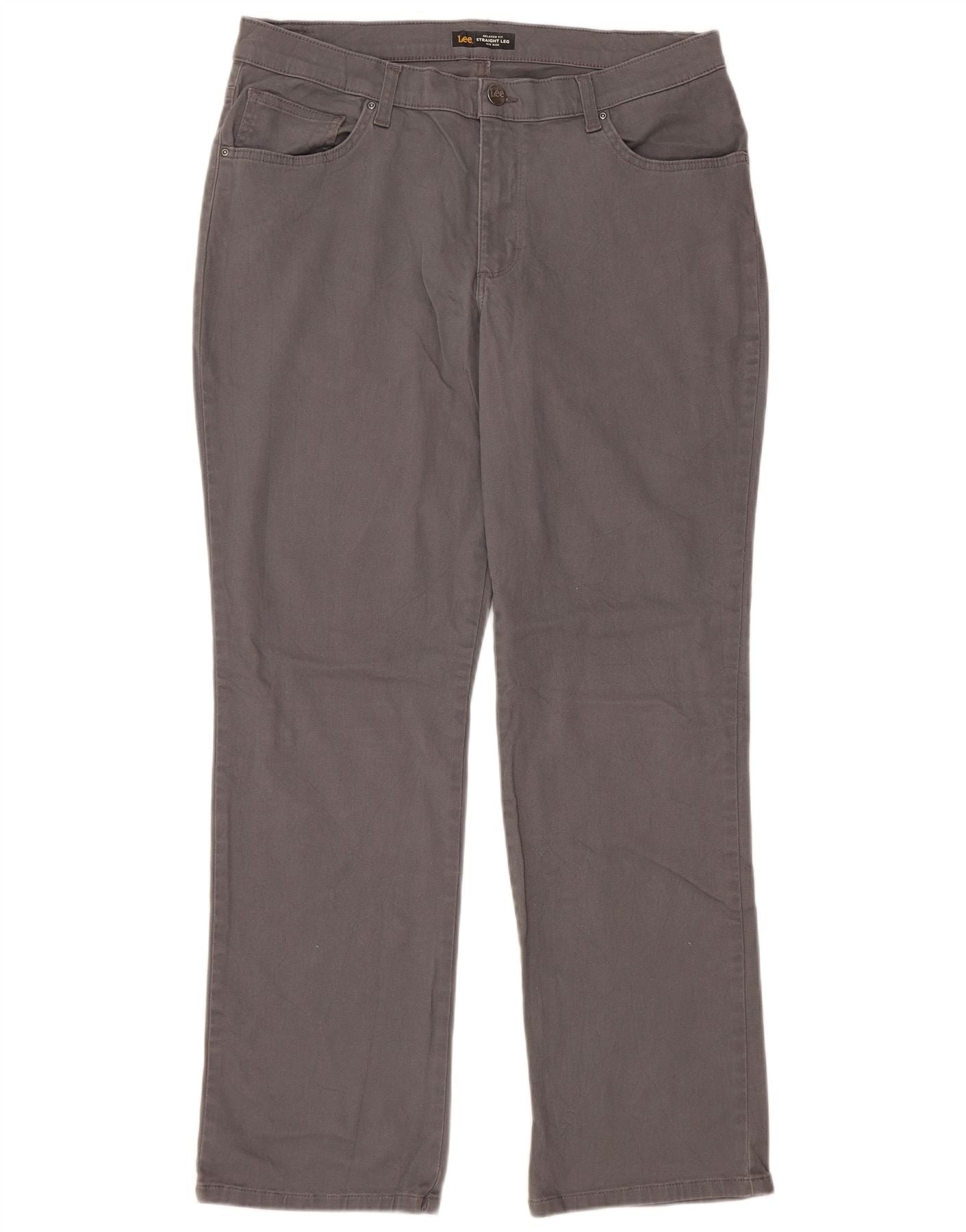LEE Calça feminina casual de cintura média com ajuste relaxado US 14 XL W36 L30 cinza