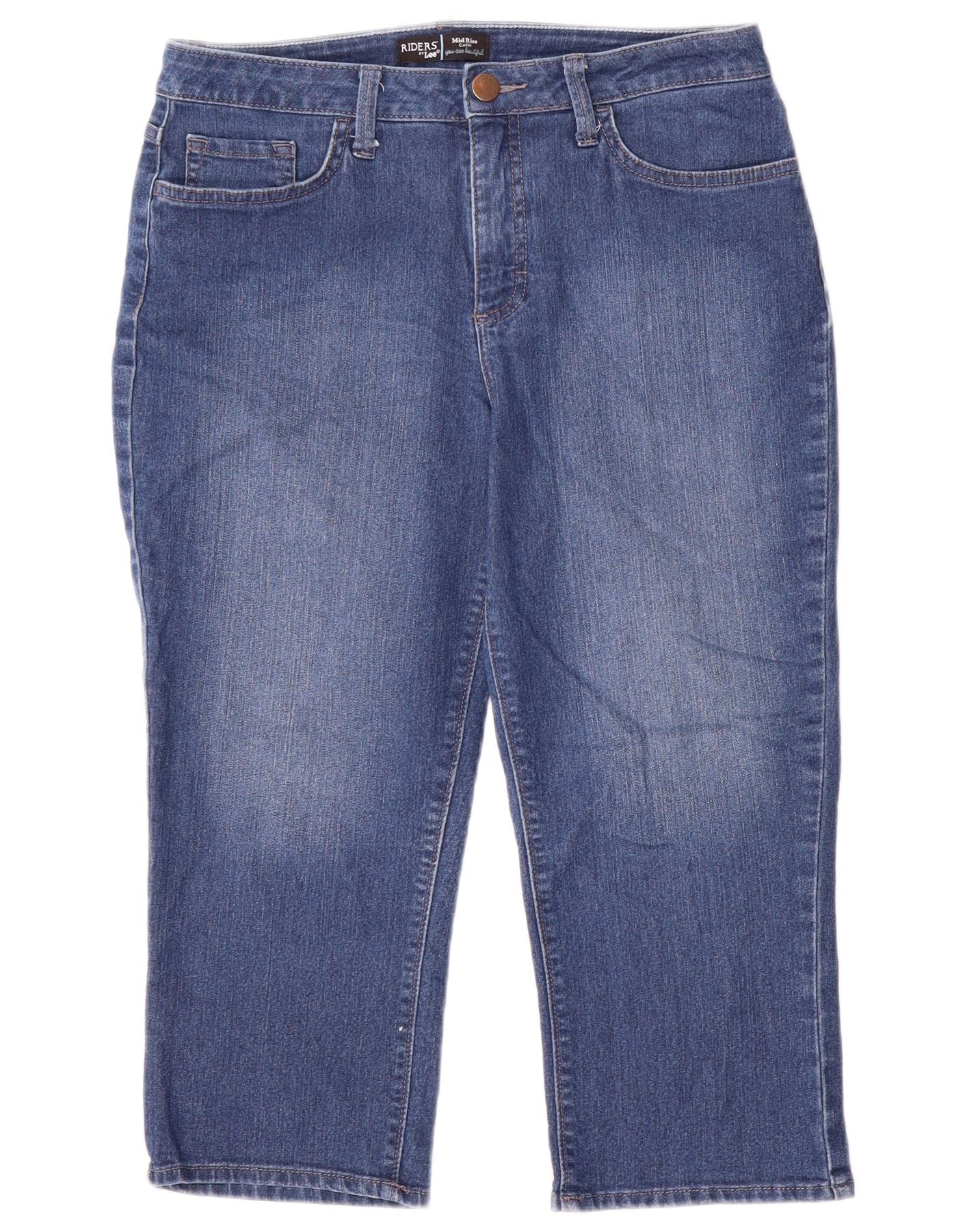Lee Womens Riders Mid Rise Capri Jeans US 10 Grande W32 L21 Azul Algodão