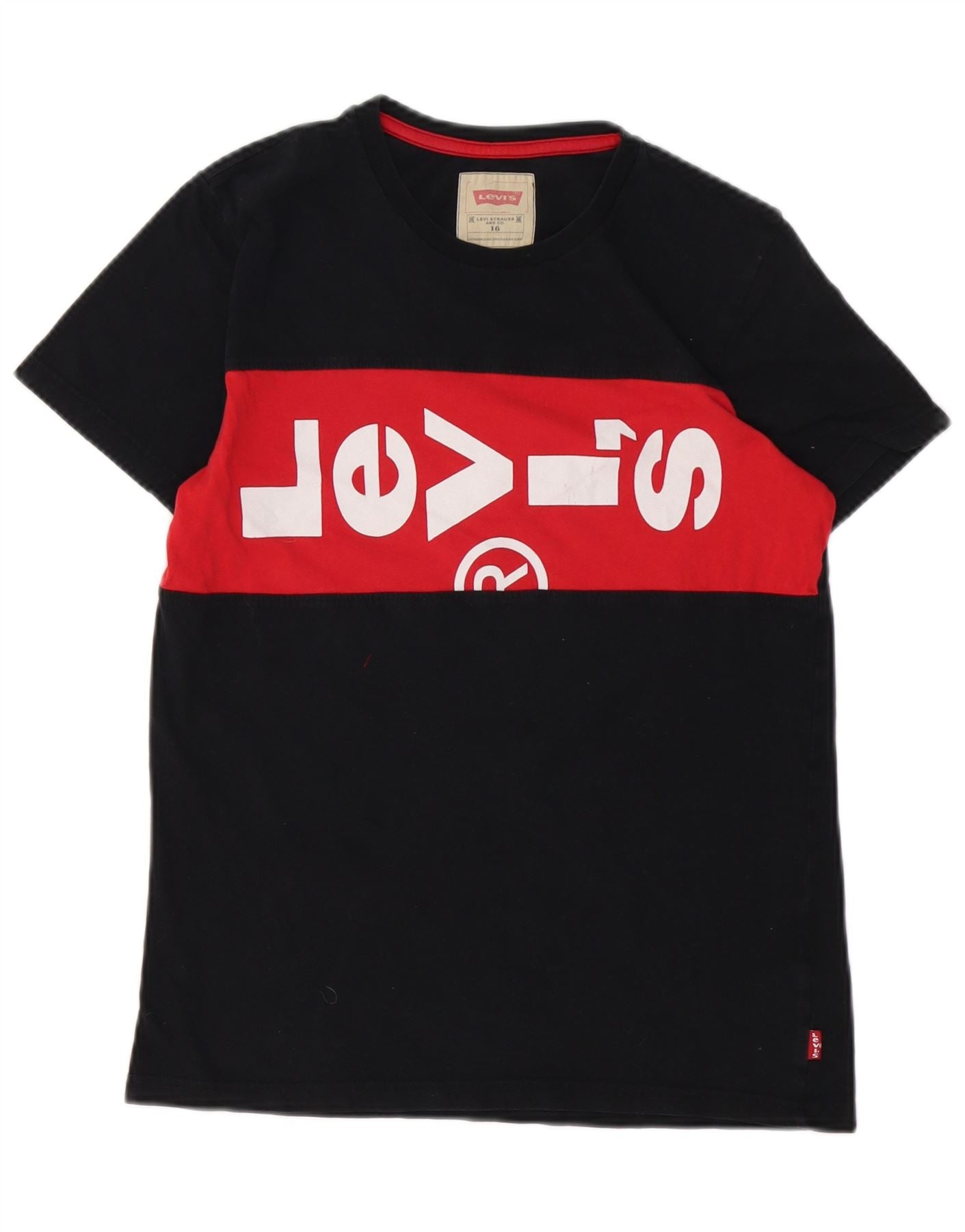 LEVI'S Boys Graphic T-Shirt Top 15-16 Years Black Colourblock Cotton