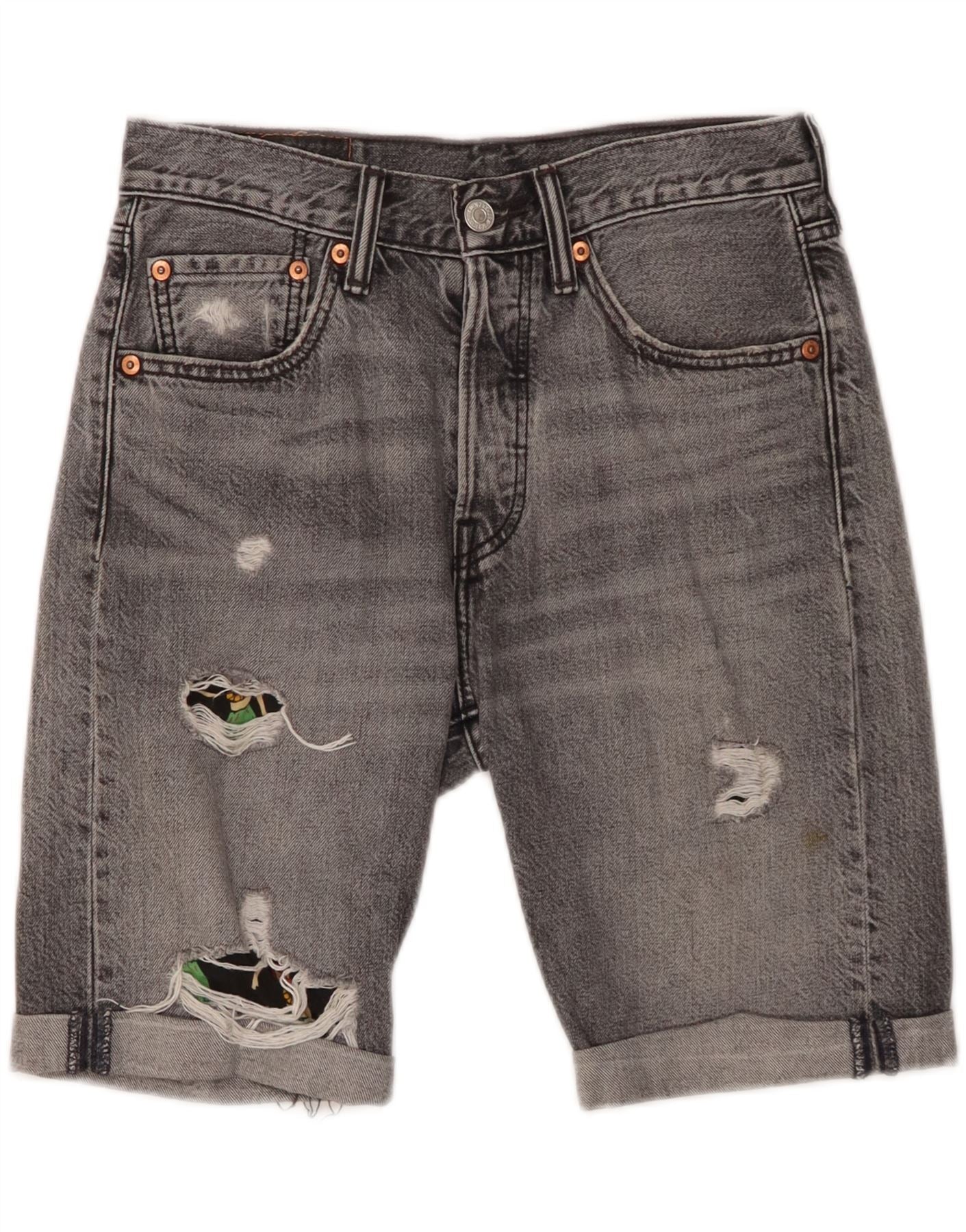 LEVI'S Masculino 501 Shorts jeans desgastados W28 pequeno algodão cinza
