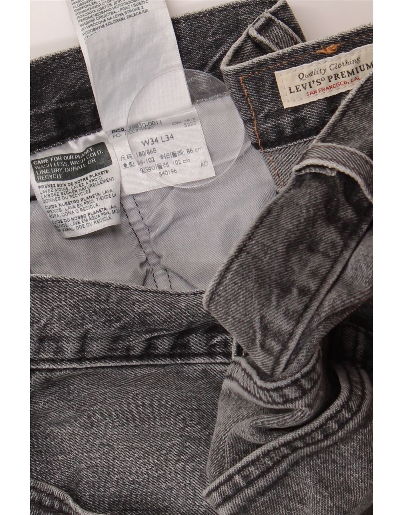 LEVI'S Masculino 501 Straight Jeans W34 L34 Cinza Algodão