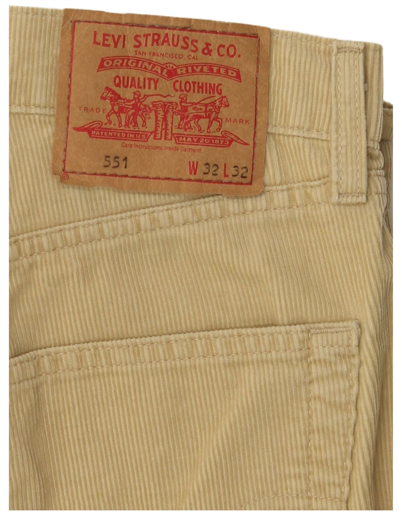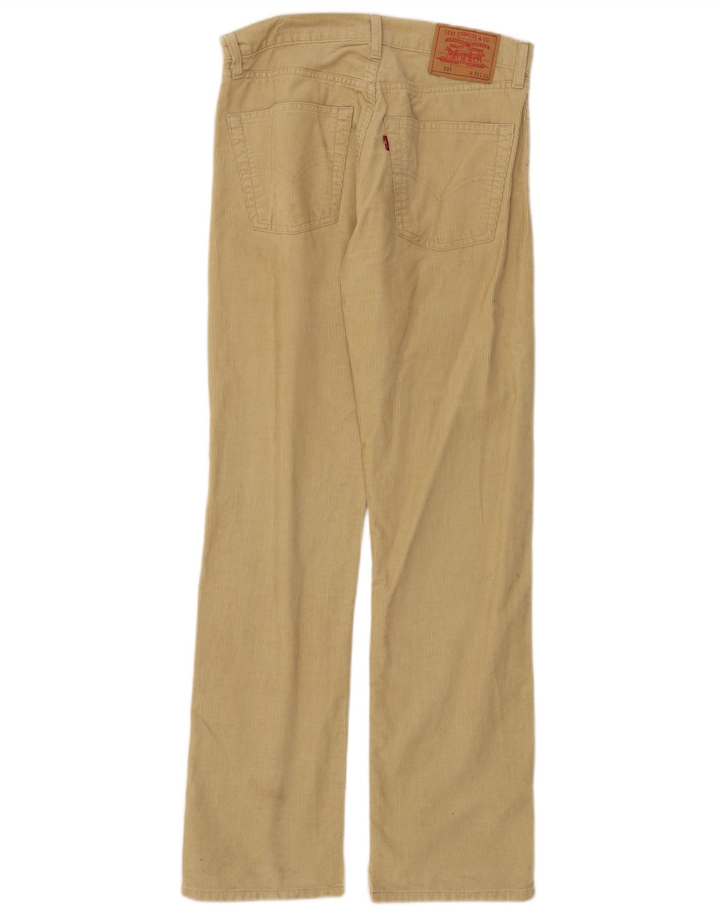 Calça masculina LEVI'S 551 de veludo cotelê W32 L32 algodão bege
