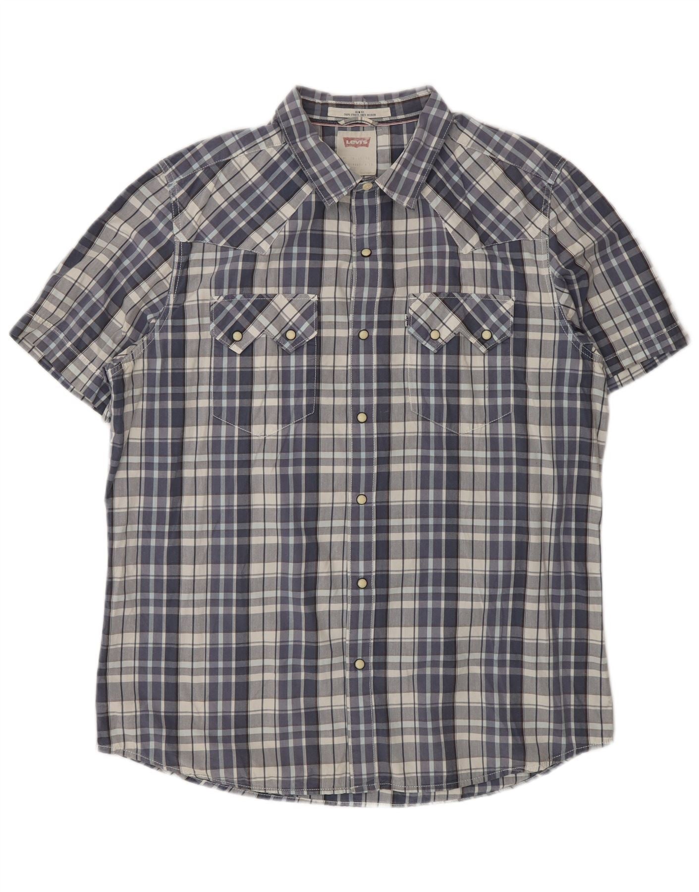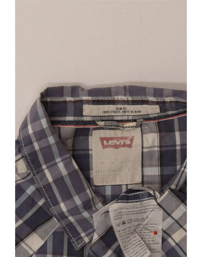Camisa masculina LEVI'S Slim Fit de manga curta XL azul xadrez de algodão