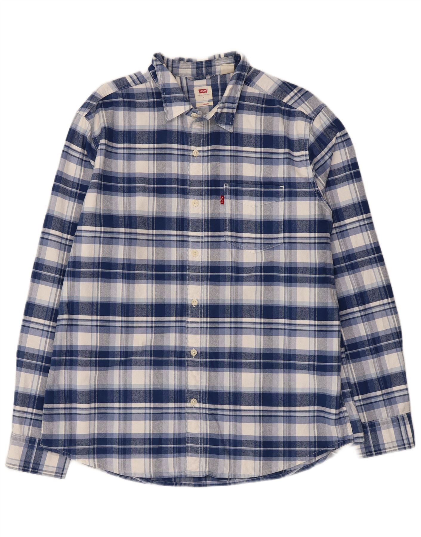 Camisa masculina de flanela de ajuste padrão LEVI'S grande algodão xadrez azul