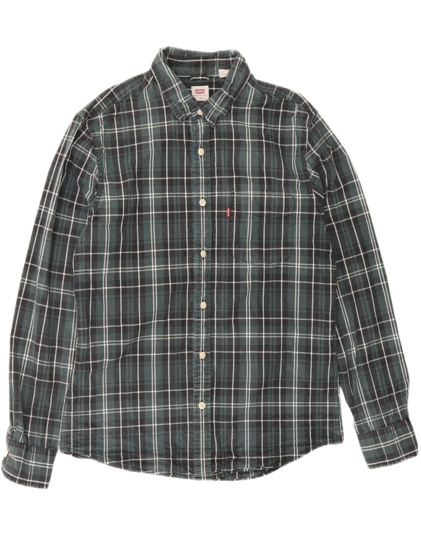 Camisa masculina de flanela de ajuste padrão LEVI'S algodão xadrez verde médio